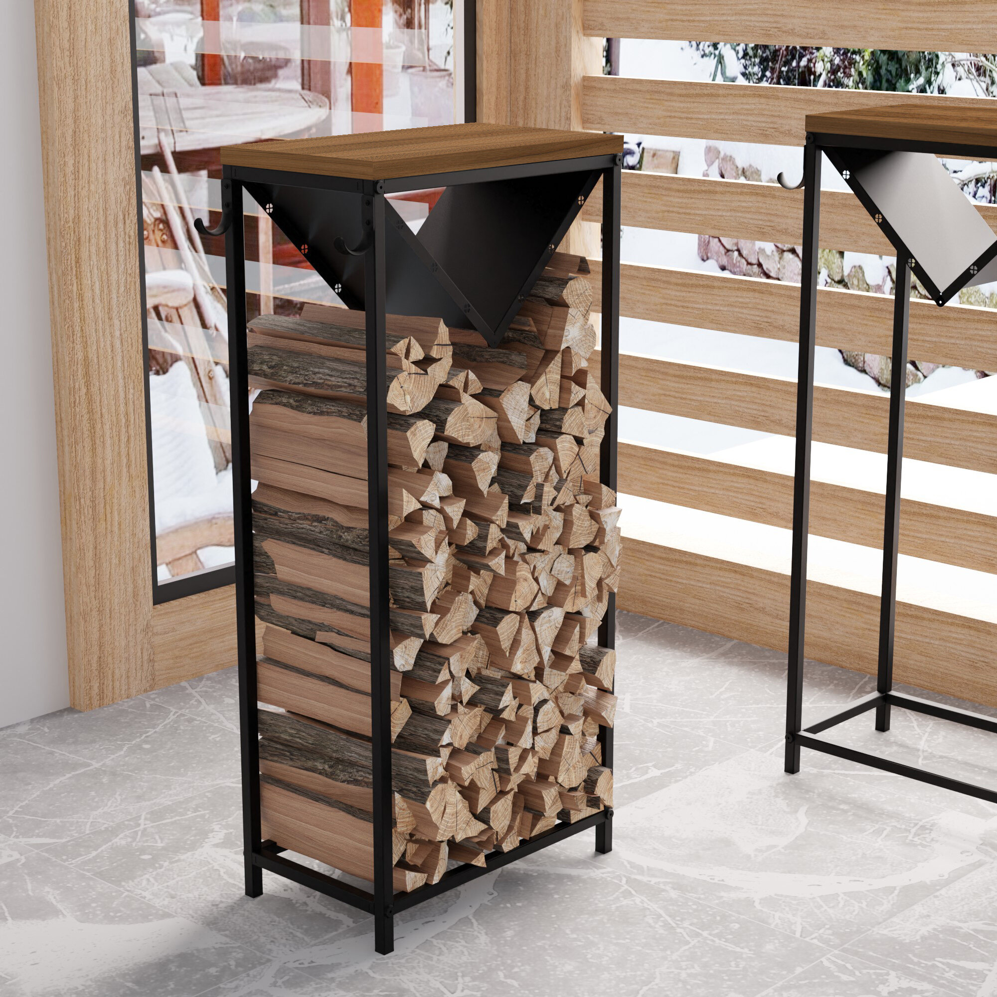 Купить Дровница с полкой, 50х110 см, Орех Дижон натуральный (25 мм)+ черный