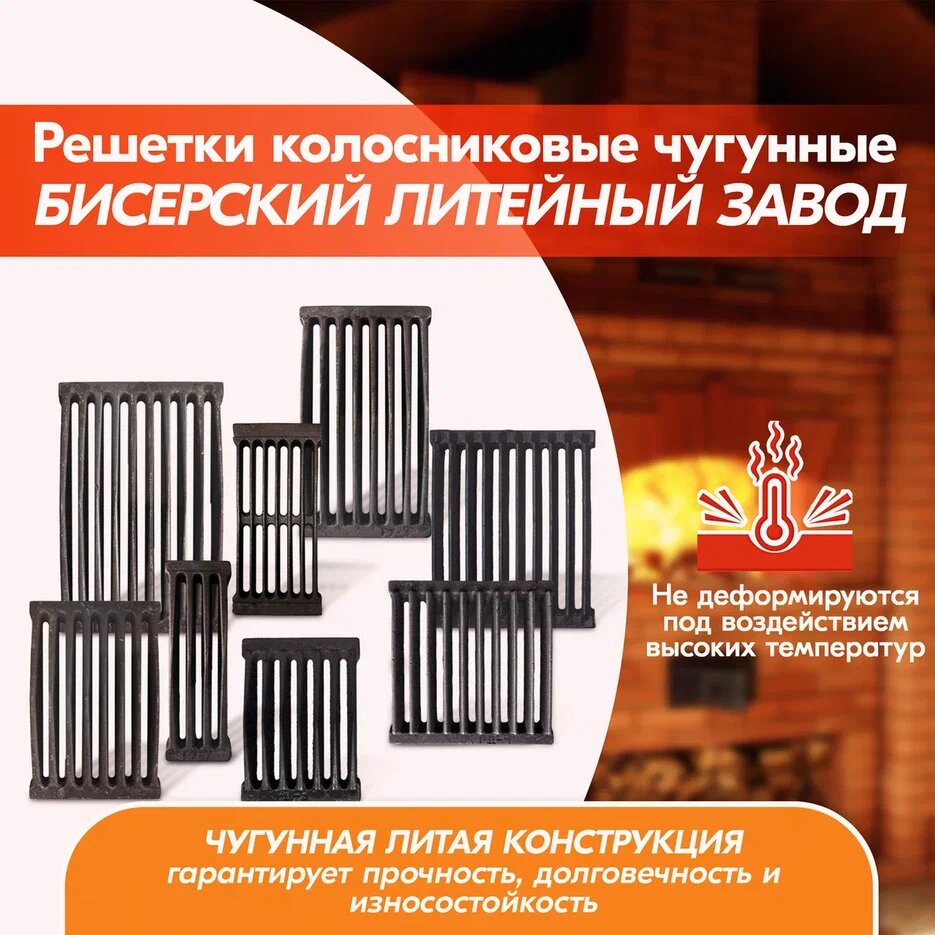 СохранитьРешетка чугунная колосниковая для печей и каминов РУ-7 (300х100) Бисерский Литейный Завод интересное: