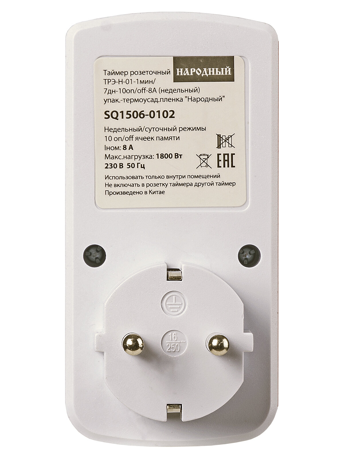 Таймер розеточный ТРЭ-Н-01-1мин/7дн-10on/off-8А (недельный) упак.-термоусад. пленка "Народный" интересное: