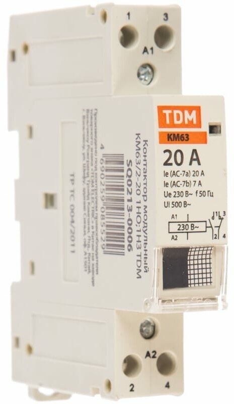 Контактор модульный КМ63/2-20 1НО;1НЗ TDM интересное: