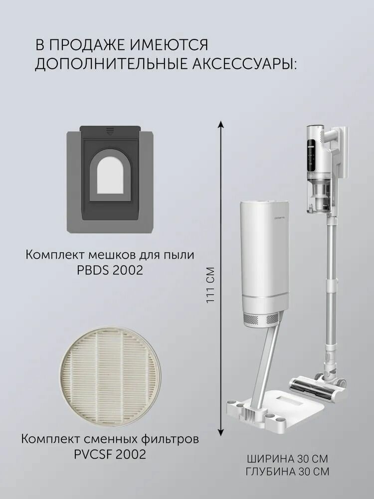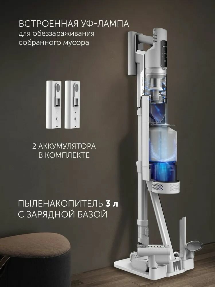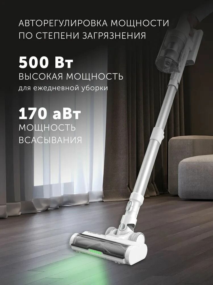 | Дополнительная информация | вертикальная парковка, индикатор заполнения пылесборника, регулировка мощности, насадка с LED подсветкой, съемный ручной пылесос, сменный аккумулятор в комплекте, подсветка зоны уборки, светодиодный дисплей |