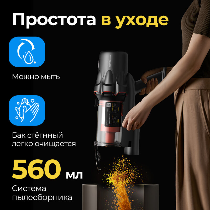 Пылесос для дома вертикальный беспроводной экосистема DEERMA T30W с сухой уборкой с контейнером интересное: