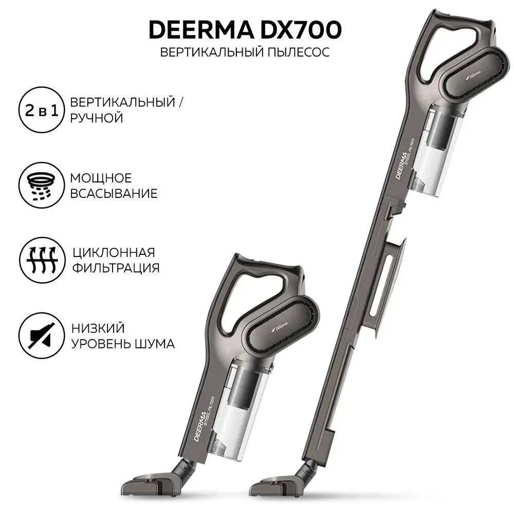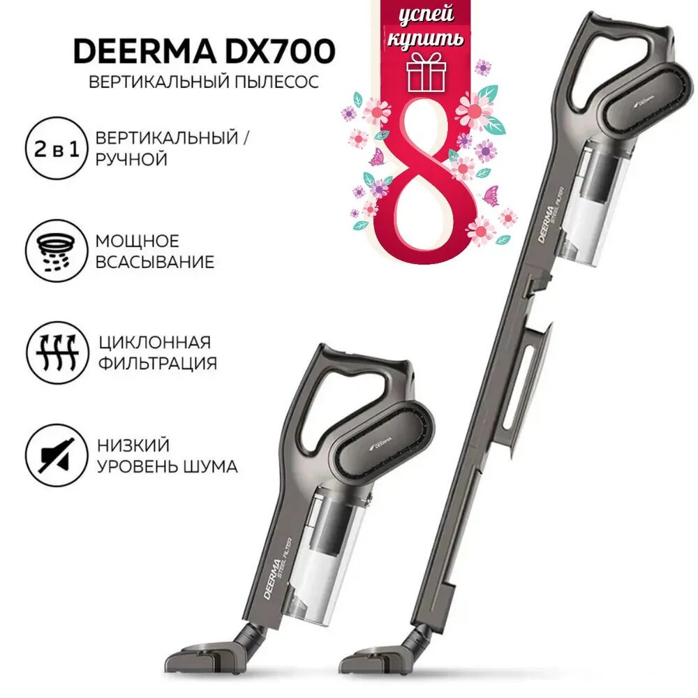 Вертикальный пылесос Deerma DX700S, мощность всасывания 210 Вт, серый интересное:
