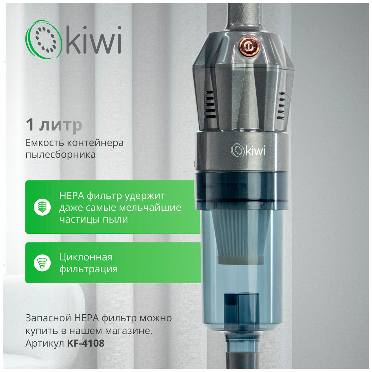 Пылесос вертикальный Kiwi KVC-4108, серый, 1,35 кг, HEPA фильтр, 15000 ПА 400Вт. интересное: