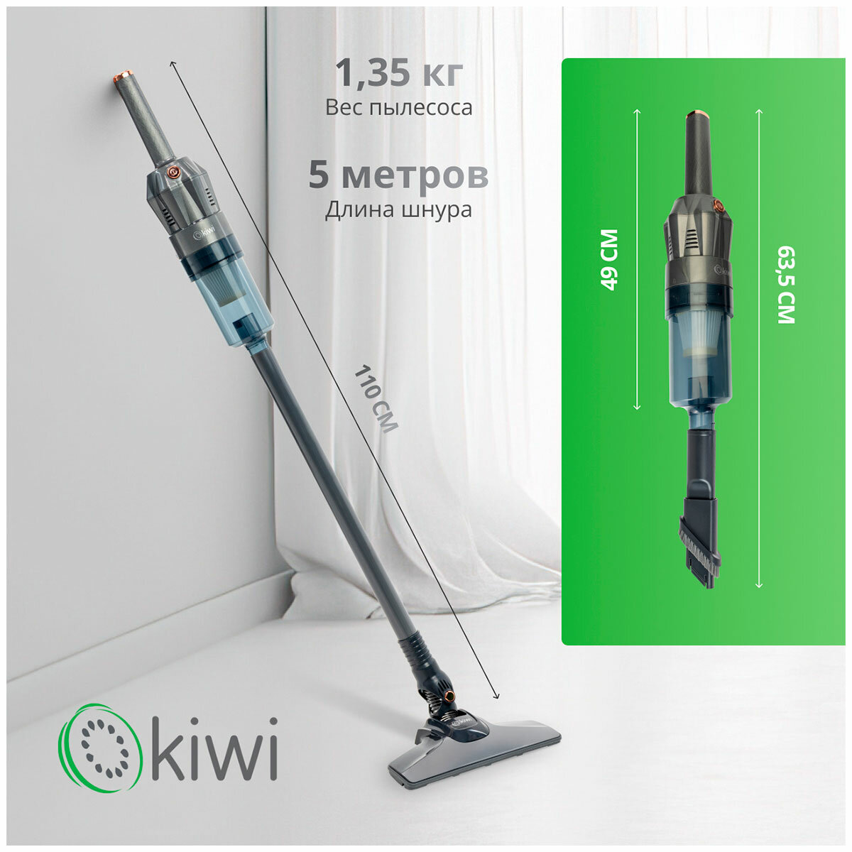 Вертикальный ручной проводной пылесос KIWI KVC-4108 серый, 1,35 кг., HEPA фильтр, 15000 ПА 400Вт.