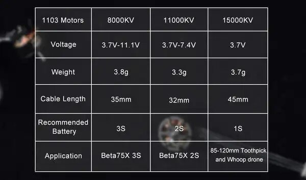 Бесщеточные двигатели BETAFPV 1103 11000KV-2S, 11000KV-2S интересное: