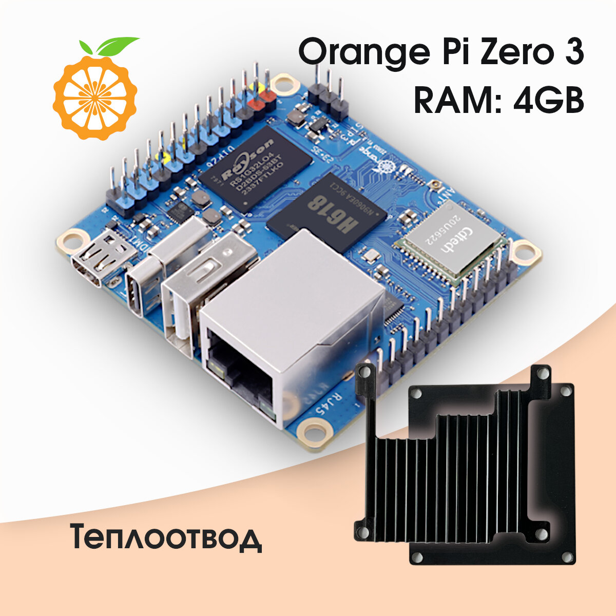 Купить Микрокомпьютер Orange Pi Zero 3, RAM 4GB, с теплоотводом