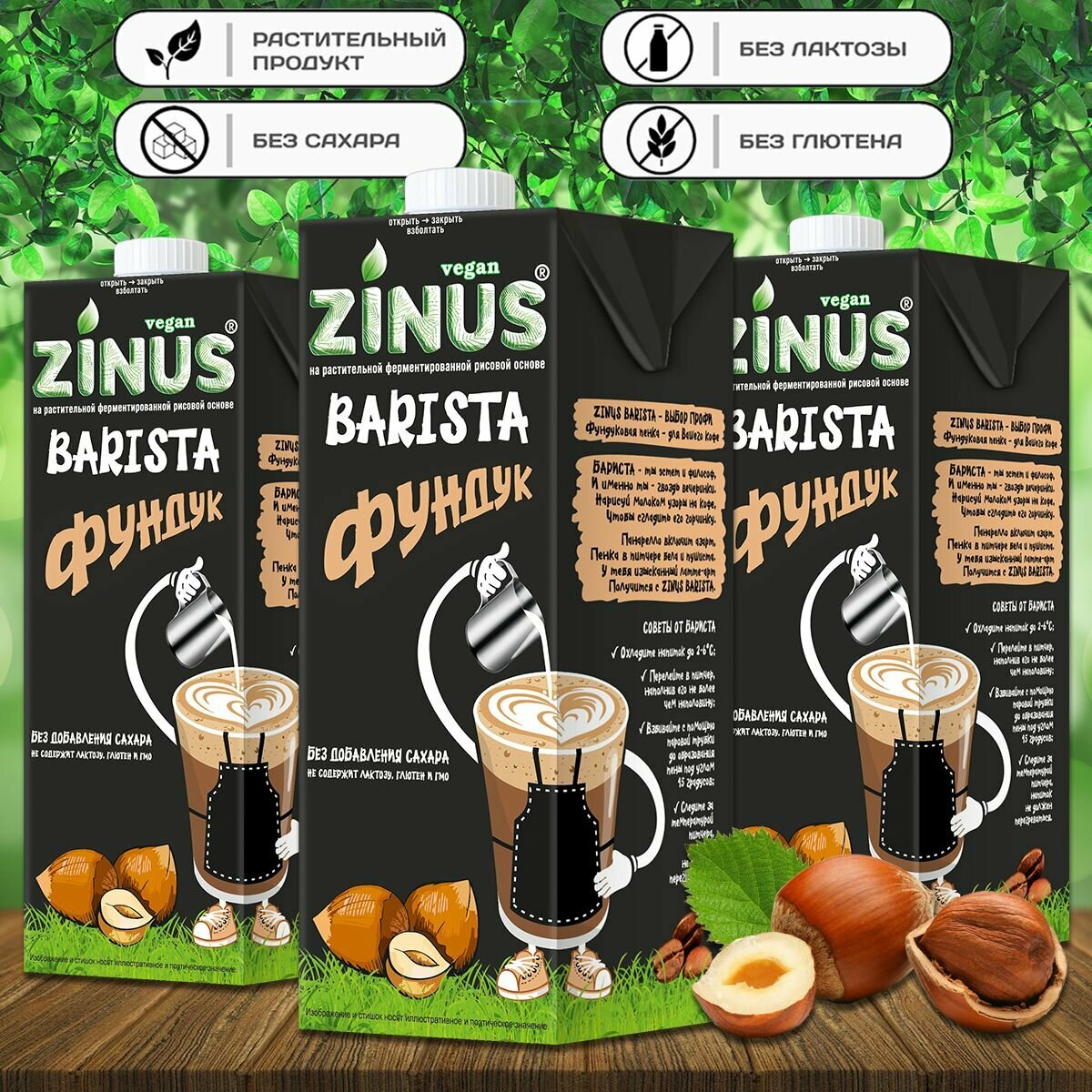 Купить Молоко фундуковое "ZINUS BARISTA" 1 литр, (3 штуки в наборе)