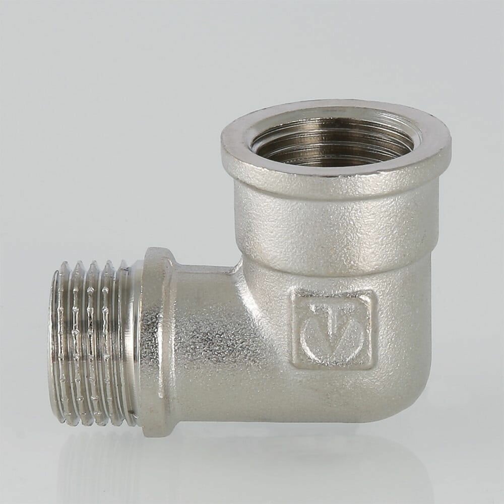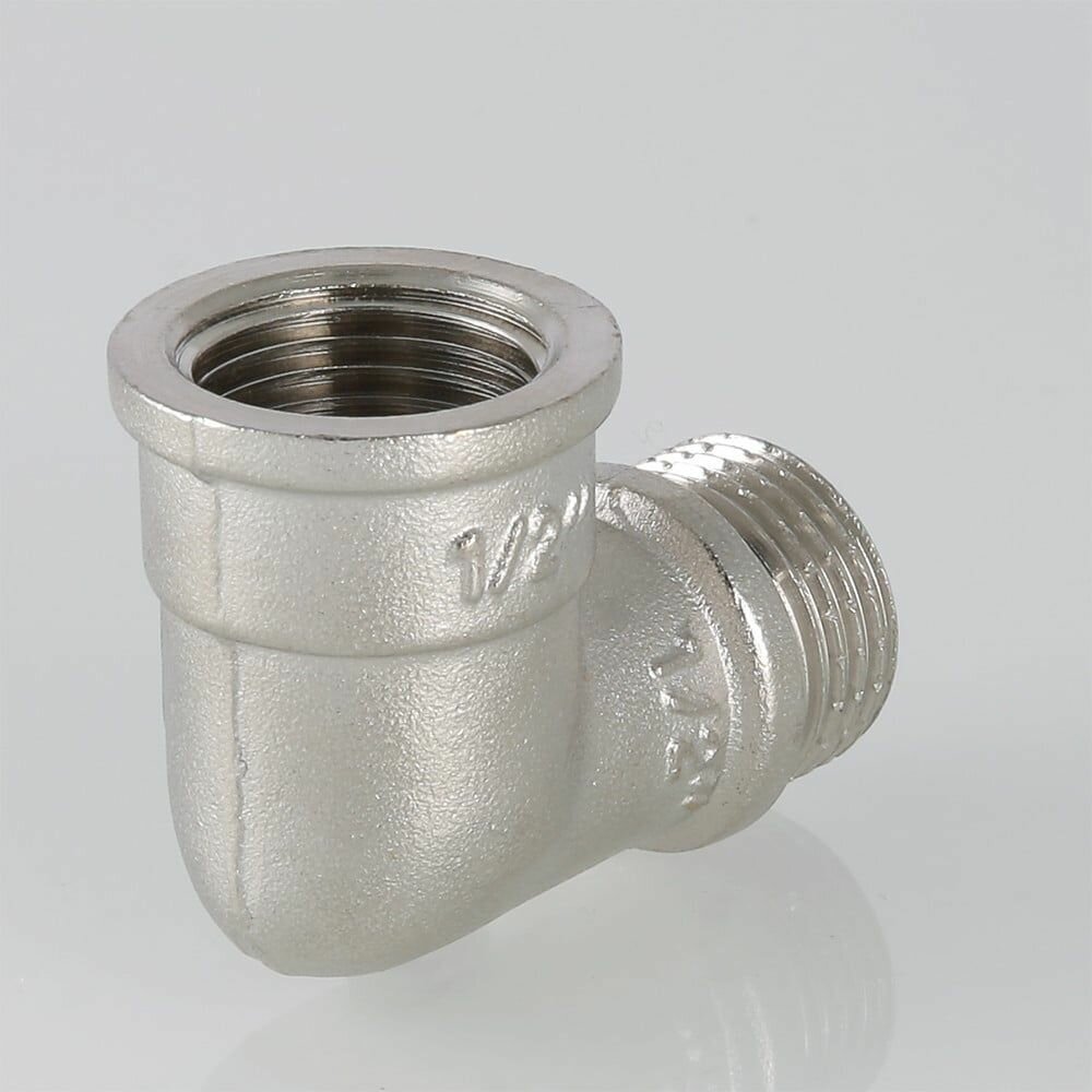 Угольник 90 гр. 1/2" ВР-НР VALTEC, латунный никелированный / Резьбовой фитинг угловой ДУ 15 для монтажа труб, арматуры в системе отопления и водоснабжения, арт. VTr.092.N.0004