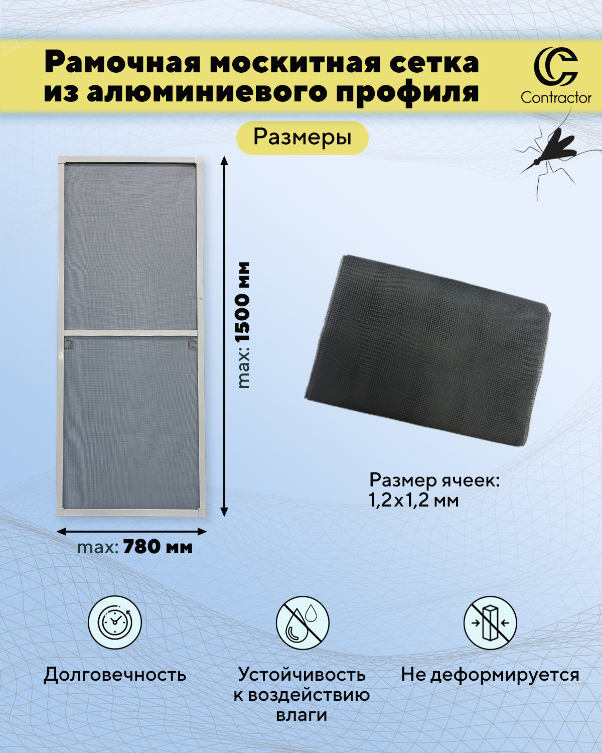 Москитная сетка на окно для самостоятельной сборки (профиль алюминиевый) 1500х780 мм, цвет белый интересное: