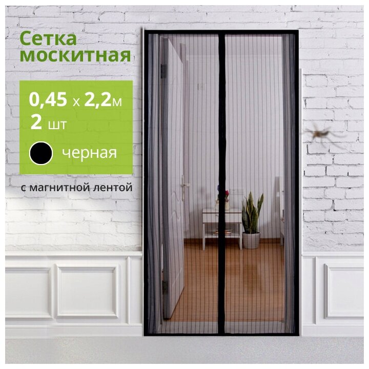 Сетка москитная `PRAKTISCHE` 0,45х2,2м-2штуки для дверного проема с магнитами черная