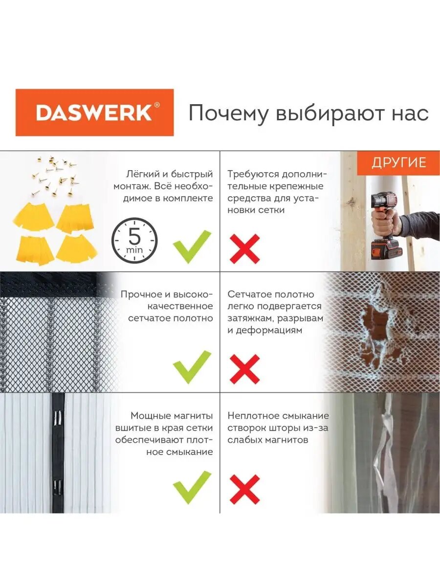 Купить Москитная сетка дверная на магнитах 60798 100х210 см DASWERK, 2100х1000 мм, 1 шт, черный