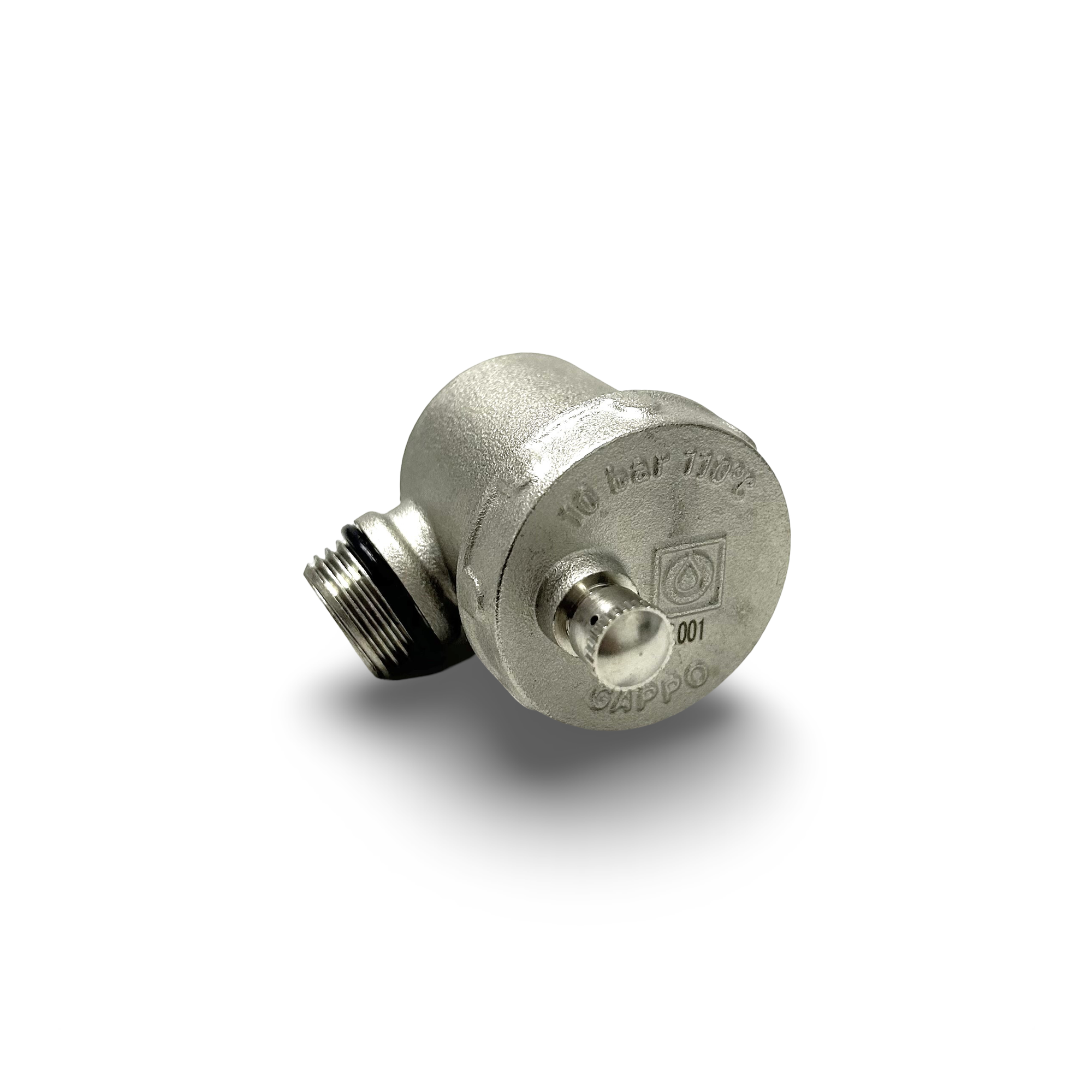 Воздухоотводчик автоматический, 1/2, Н, PN, бар-10, без автозапора, никелированный, с угловым подключением