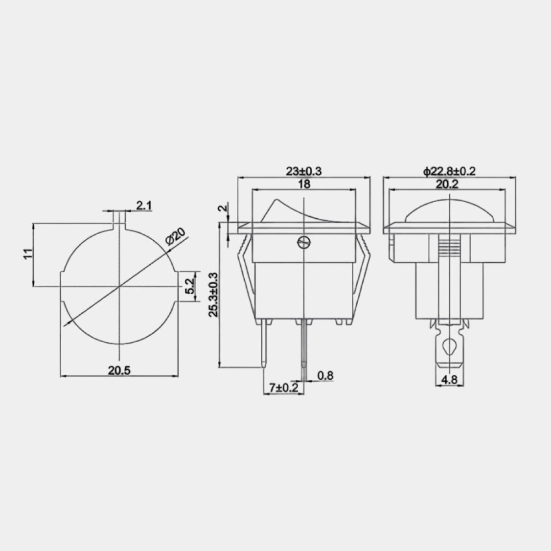 Выключатель клавишный круглый 250V 6А (2с) ON-OFF белый (комплект с клеммами и термоусадкой)