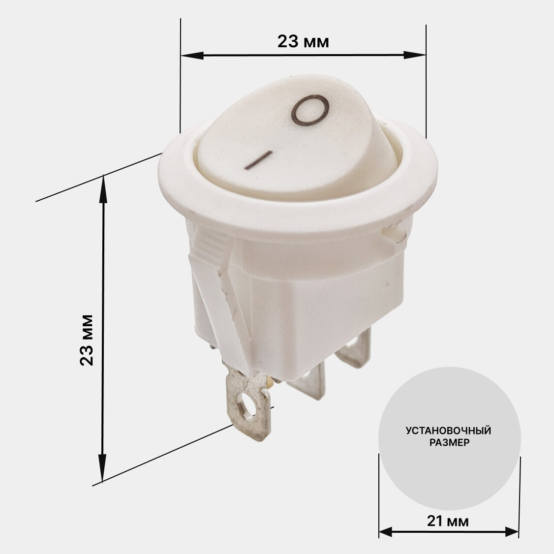 Купить Выключатель клавишный КРУГЛЫЙ 250V 6А (3с) ON-ON комплект 2 шт, БЕЛЫЙ (+ клеммы и термоусадка)
