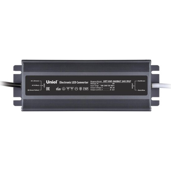 Uniel Блок питания Uniel 12V 60W IP67 5A UET-VAF-060A67 12V IP67 UL-00007575