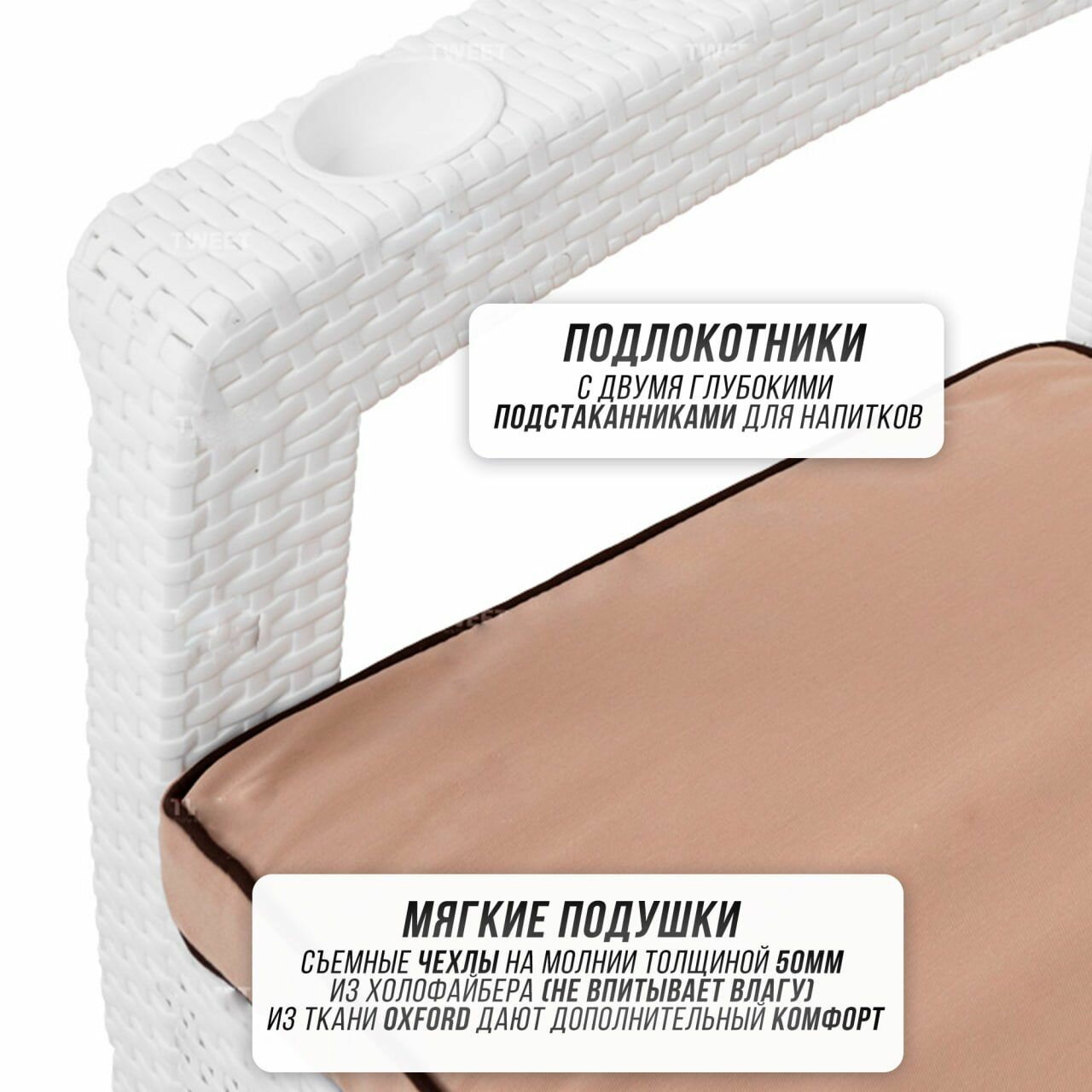 Диван 4SIS "Милан" диван 3-местный плетеный из роупа, каркас алюминий белый муар, роуп бежевый круглый, ткань бежевая 052 арт. MIL-S-3-001 W Mua beige(beige052)