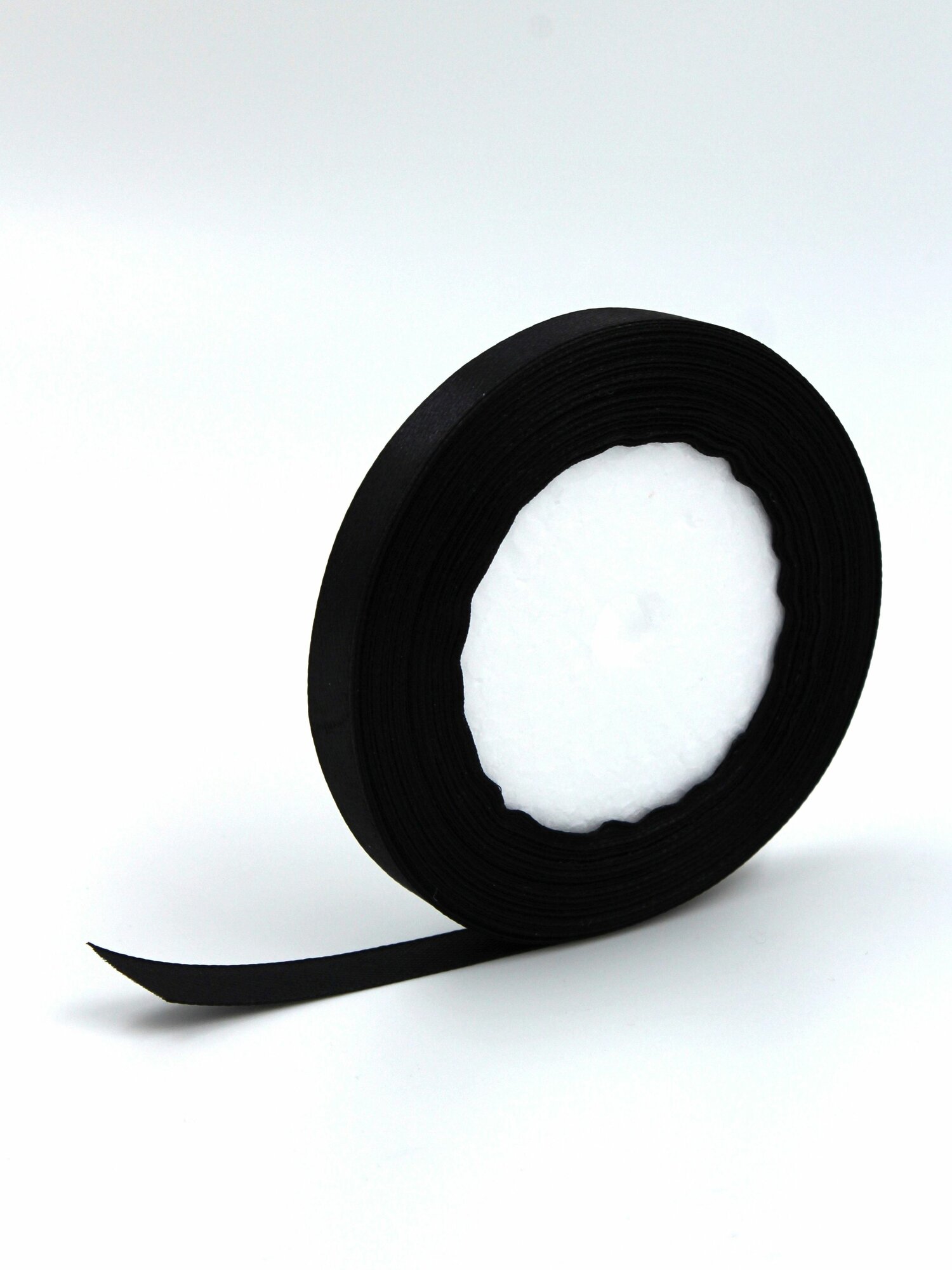 Лента атласная 1,2см х 23м черная, упаковочная для рукоделия, для декора и творчества, шитья, упаковки и оформления подарков, 12мм