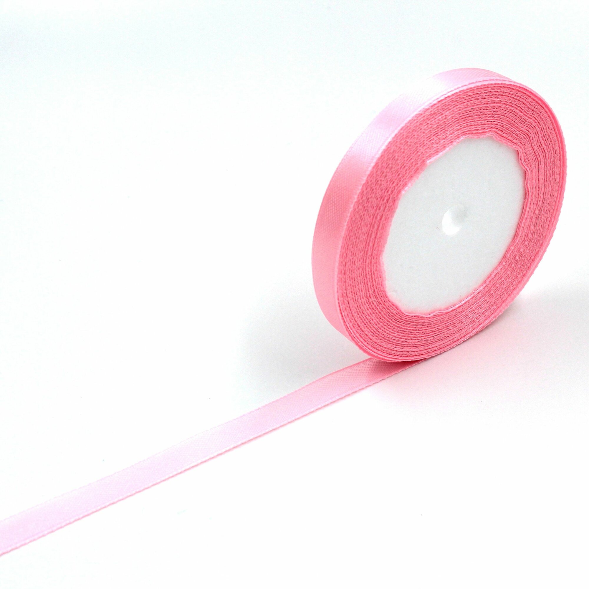Лента атласная 1,2см х 23м розовая, упаковочная для рукоделия, для декора и творчества, шитья, упаковки и оформления подарков, 12мм