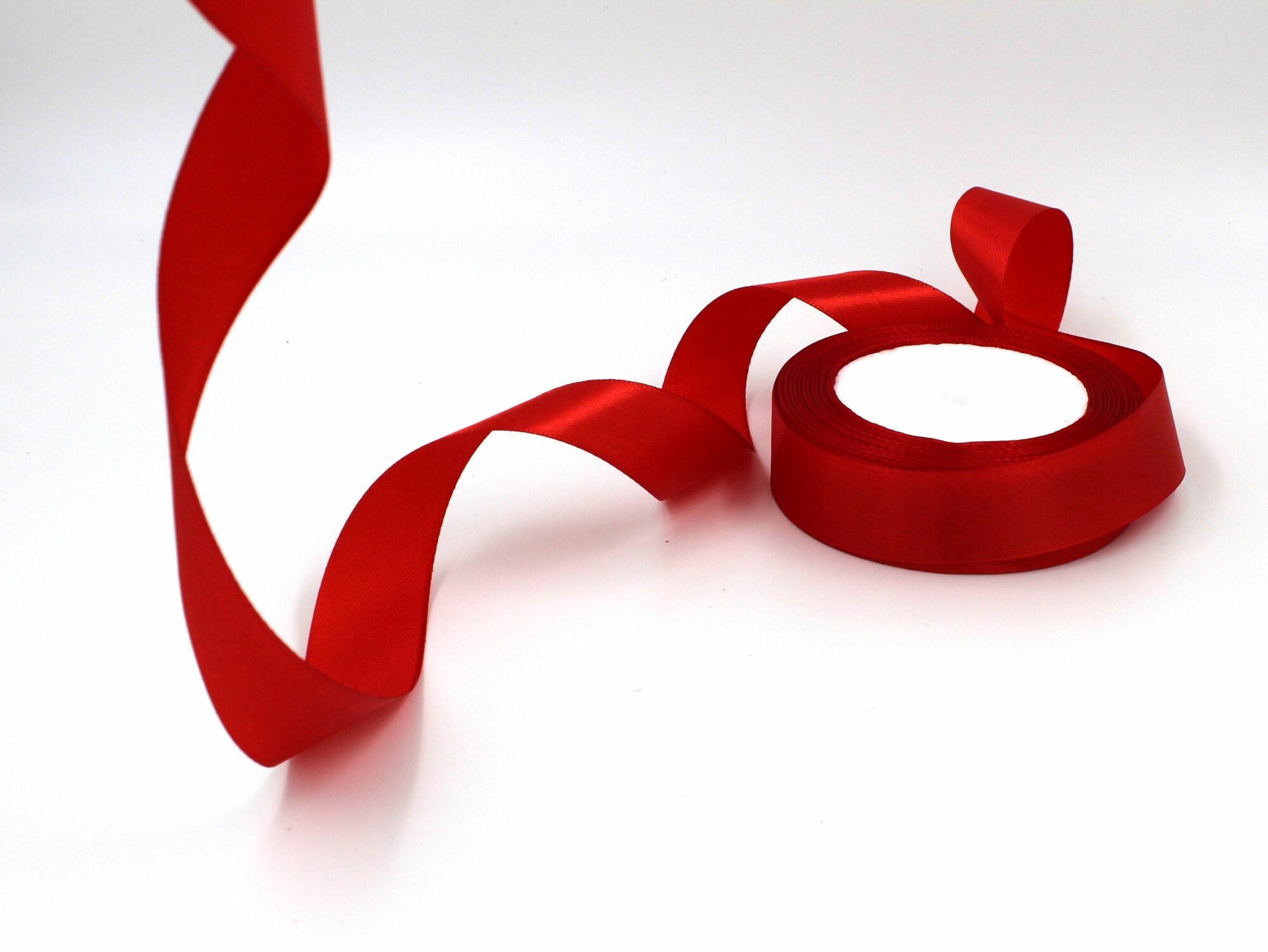Лента атласная 2см х 23м красная, упаковочная для рукоделия, для декора и творчества, шитья, упаковки и оформления подарков, 20мм