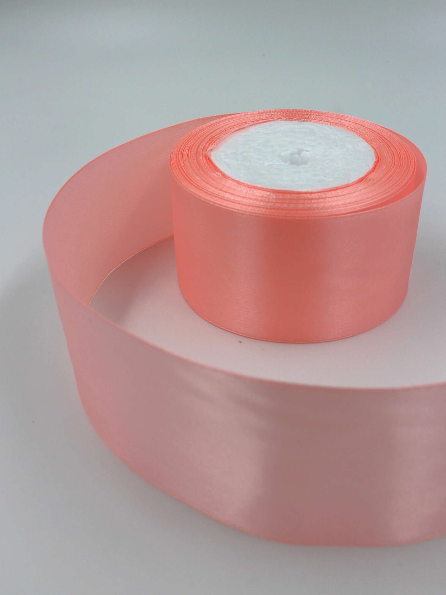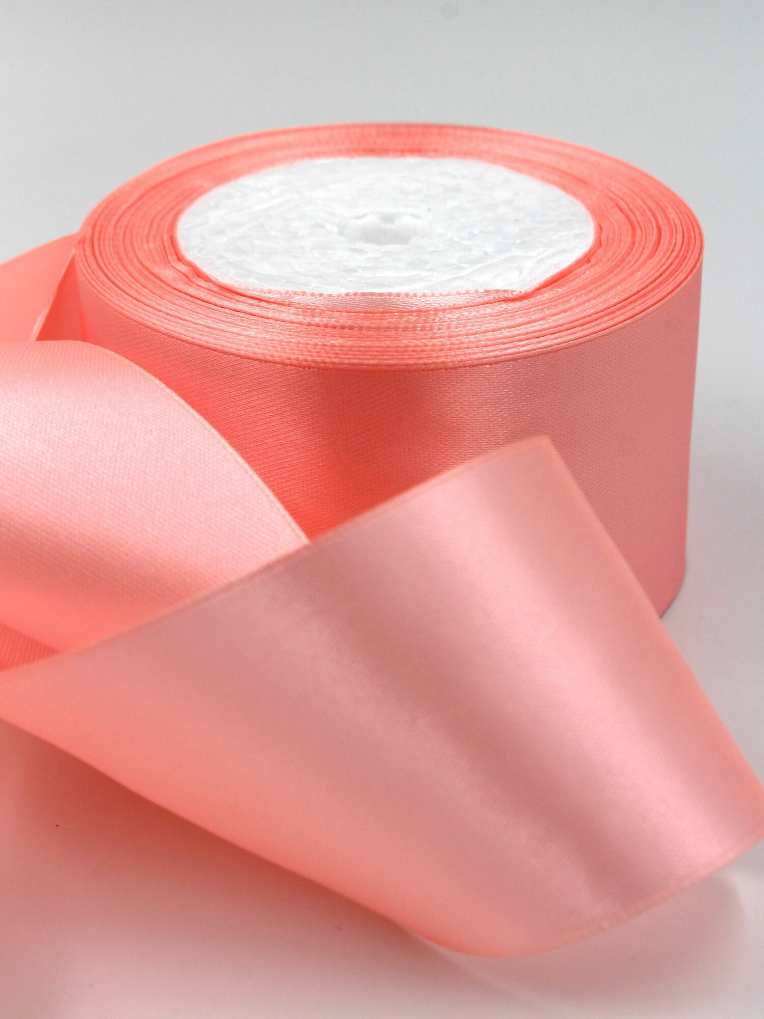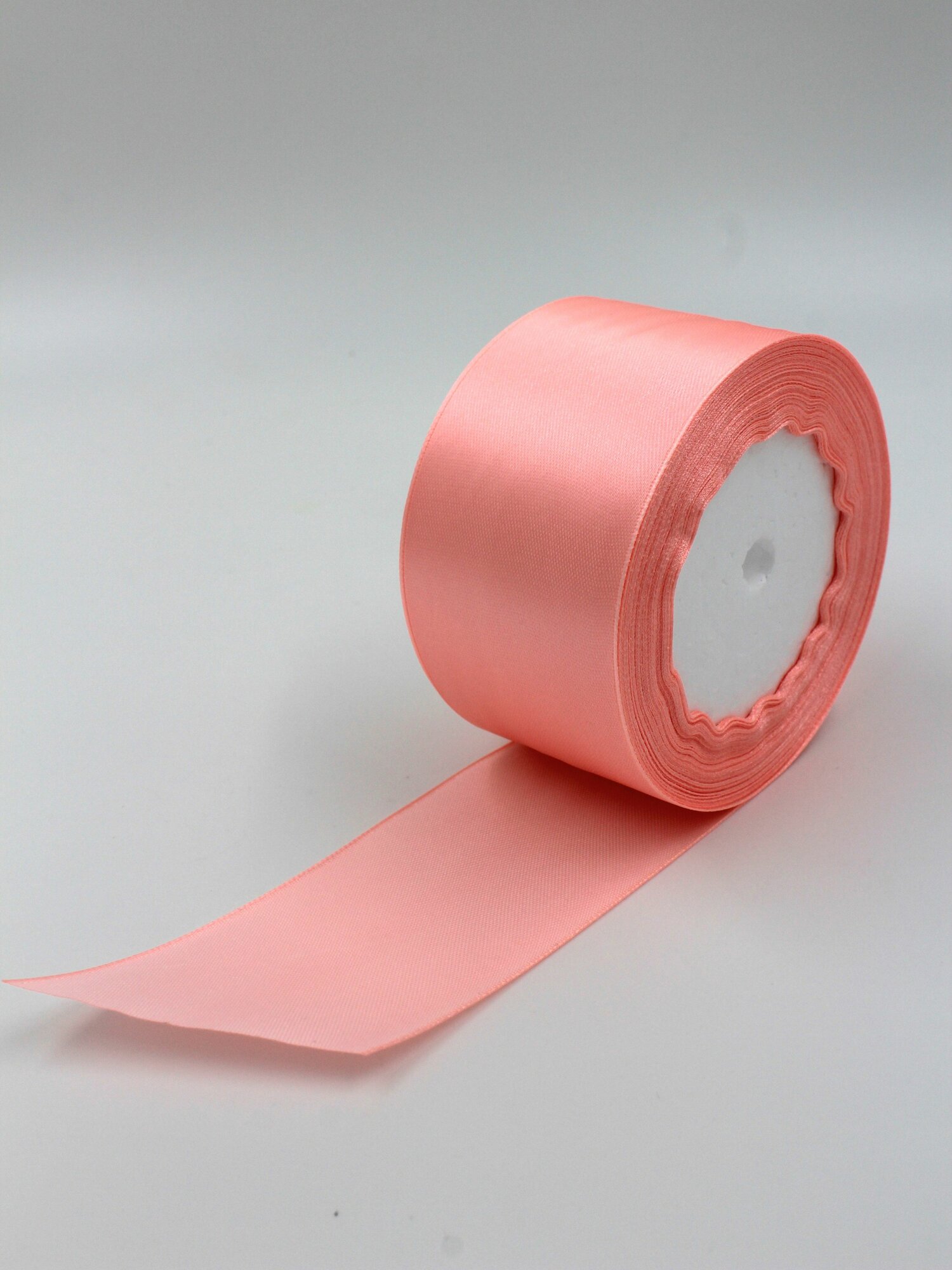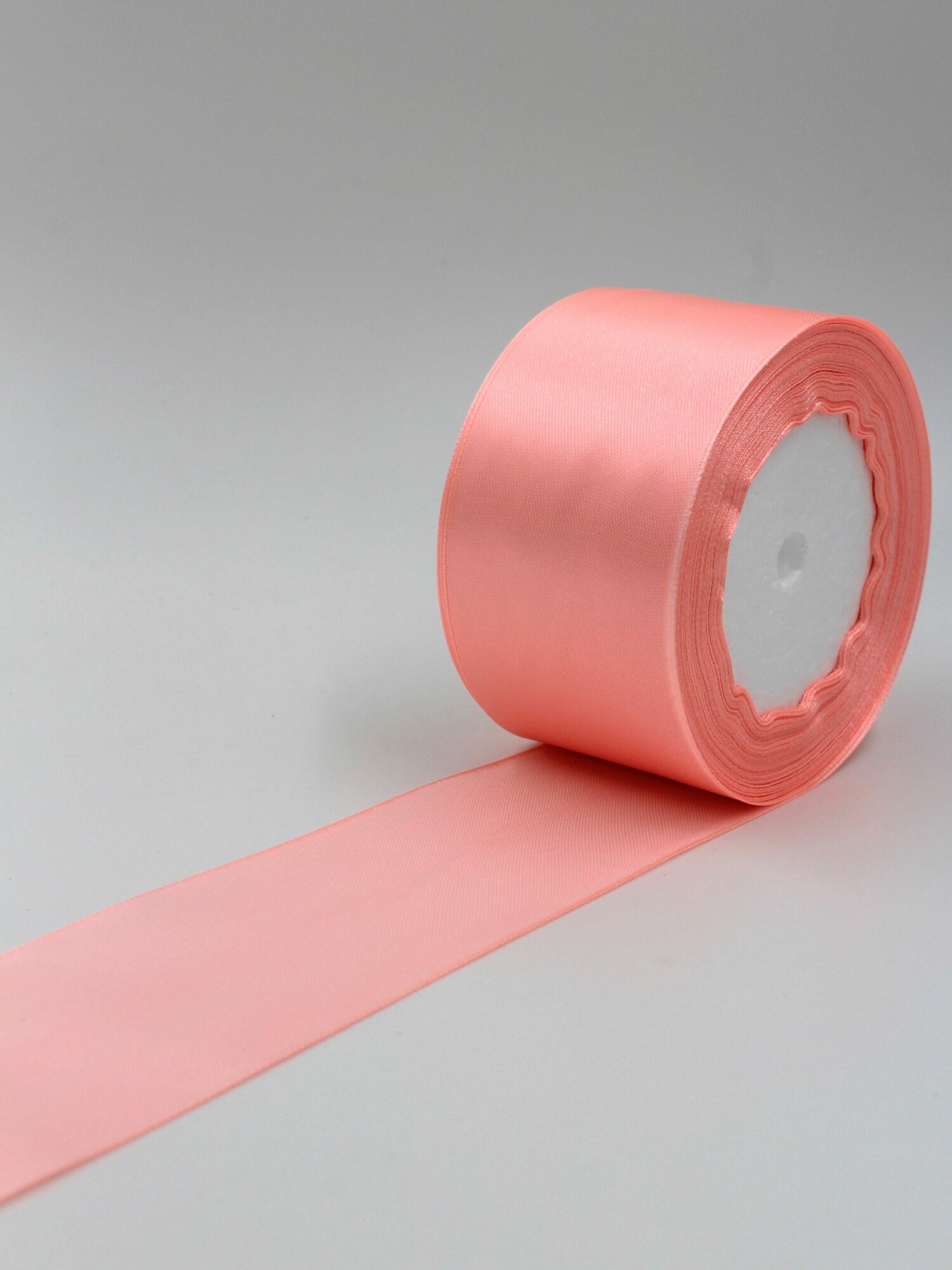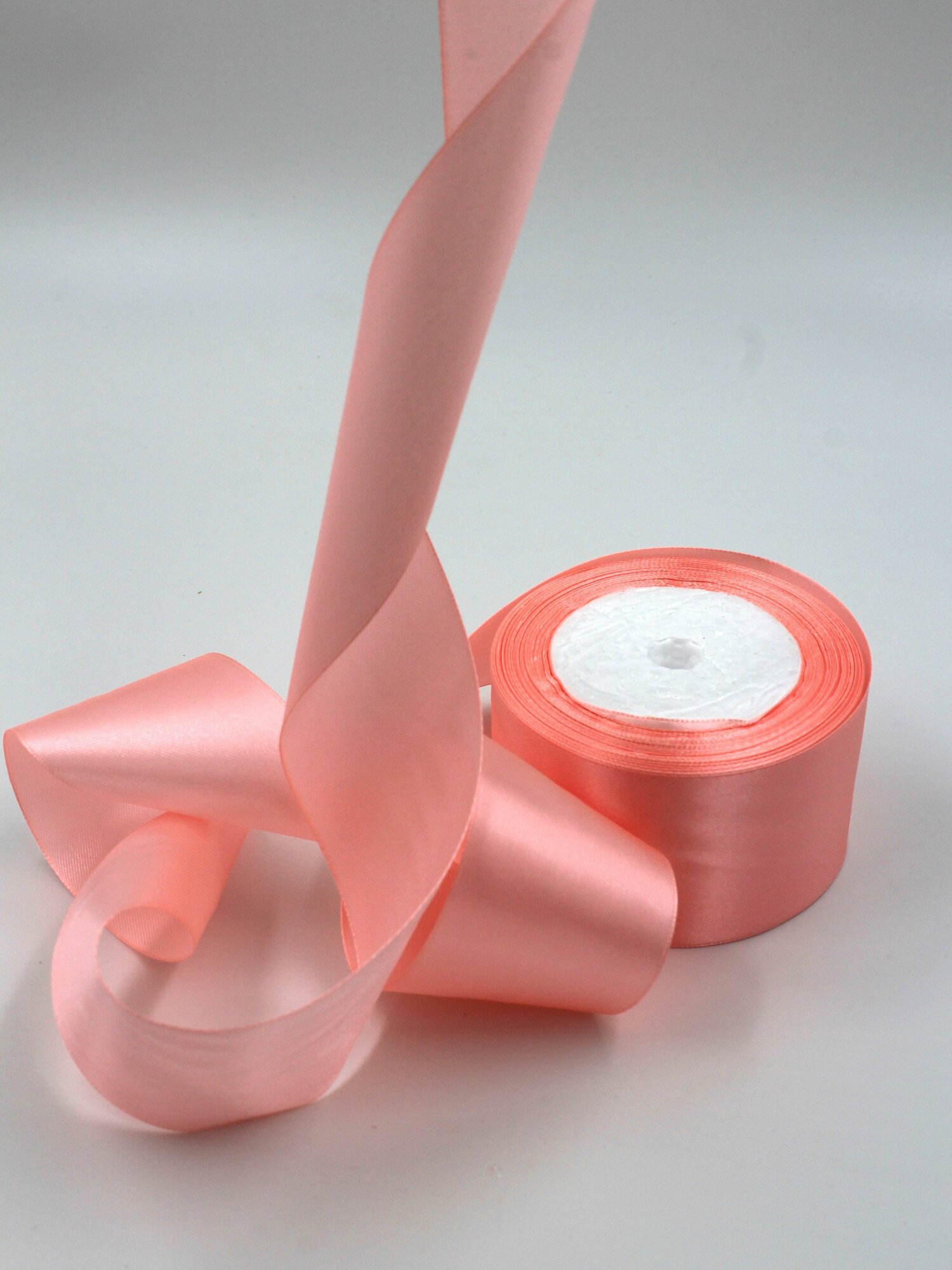 Лента атласная 5см х 23м розовая, упаковочная для рукоделия, для декора и творчества, шитья, упаковки и оформления подарков, 50мм