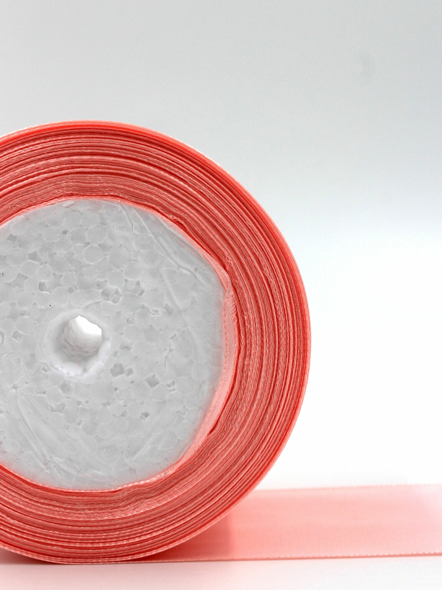 Лента атласная 2,5см х 23м розовая, упаковочная для рукоделия, для декора и творчества, шитья, упаковки и оформления подарков, 25мм