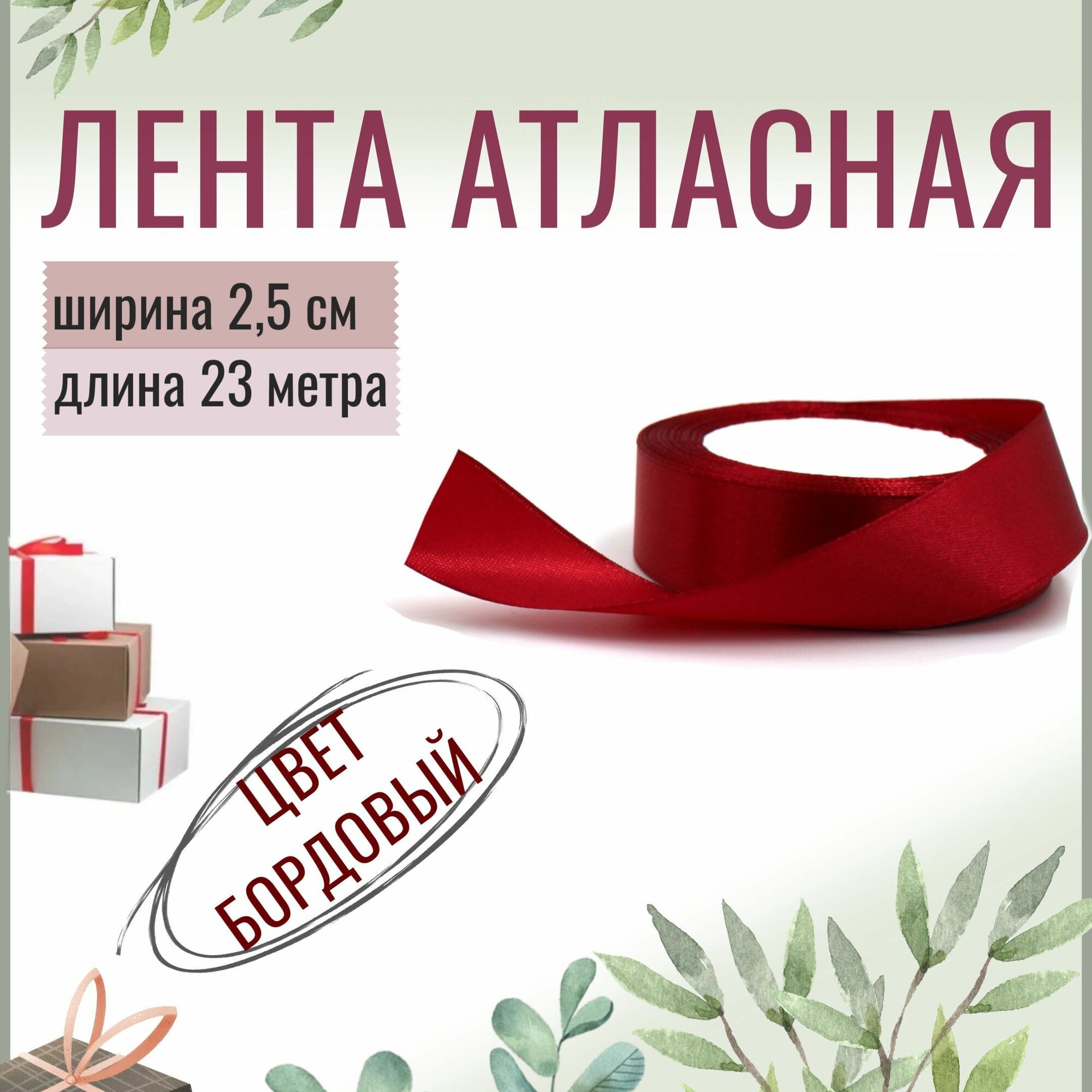 Купить Лента атласная 2,5см х 23м бордовая, упаковочная для рукоделия, для декора и творчества, шитья, упаковки и оформления подарков, 25мм