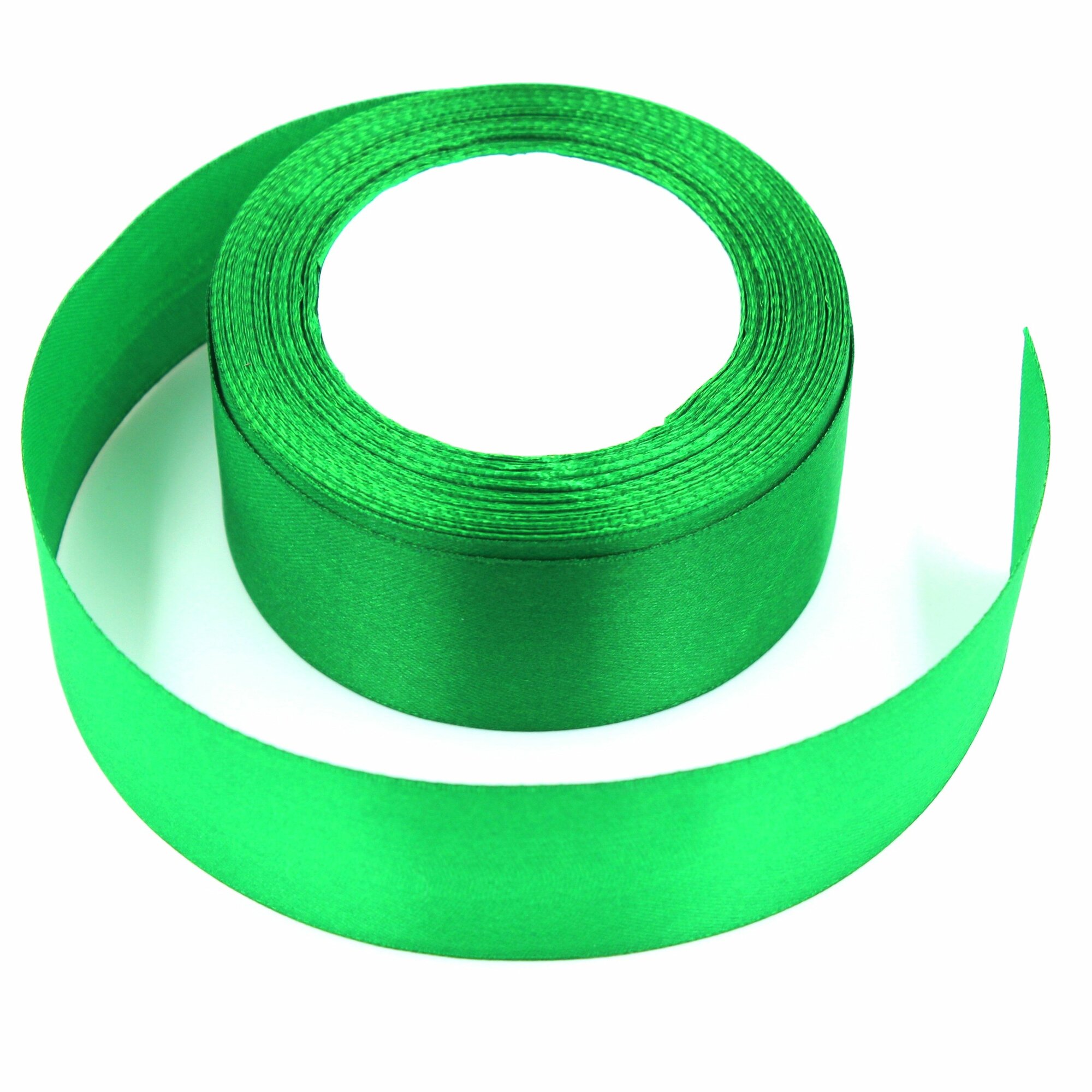 Лента атласная 2,5см х 23м зеленая, упаковочная для рукоделия, для декора и творчества, шитья, упаковки и оформления подарков, 25мм