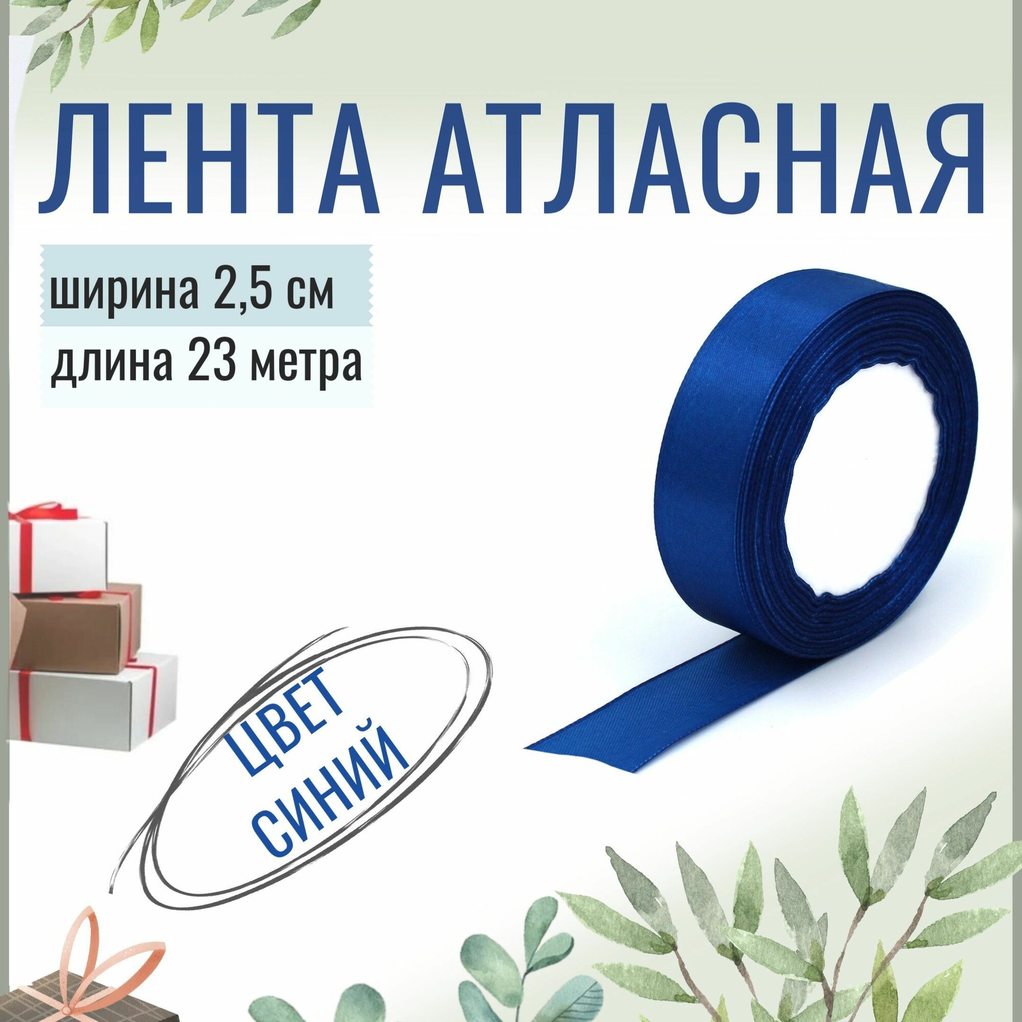 Купить Лента атласная 2,5см х 23м синяя, упаковочная для рукоделия, для декора и творчества, шитья, упаковки и оформления подарков, 25мм