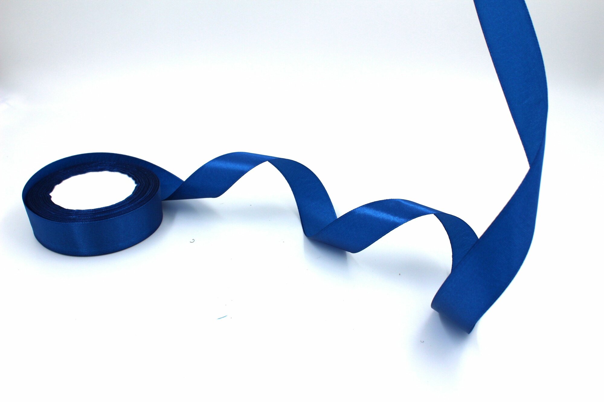 Лента атласная 1,2см х 23м синяя, упаковочная для рукоделия, для декора и творчества, шитья, упаковки и оформления подарков, 12мм