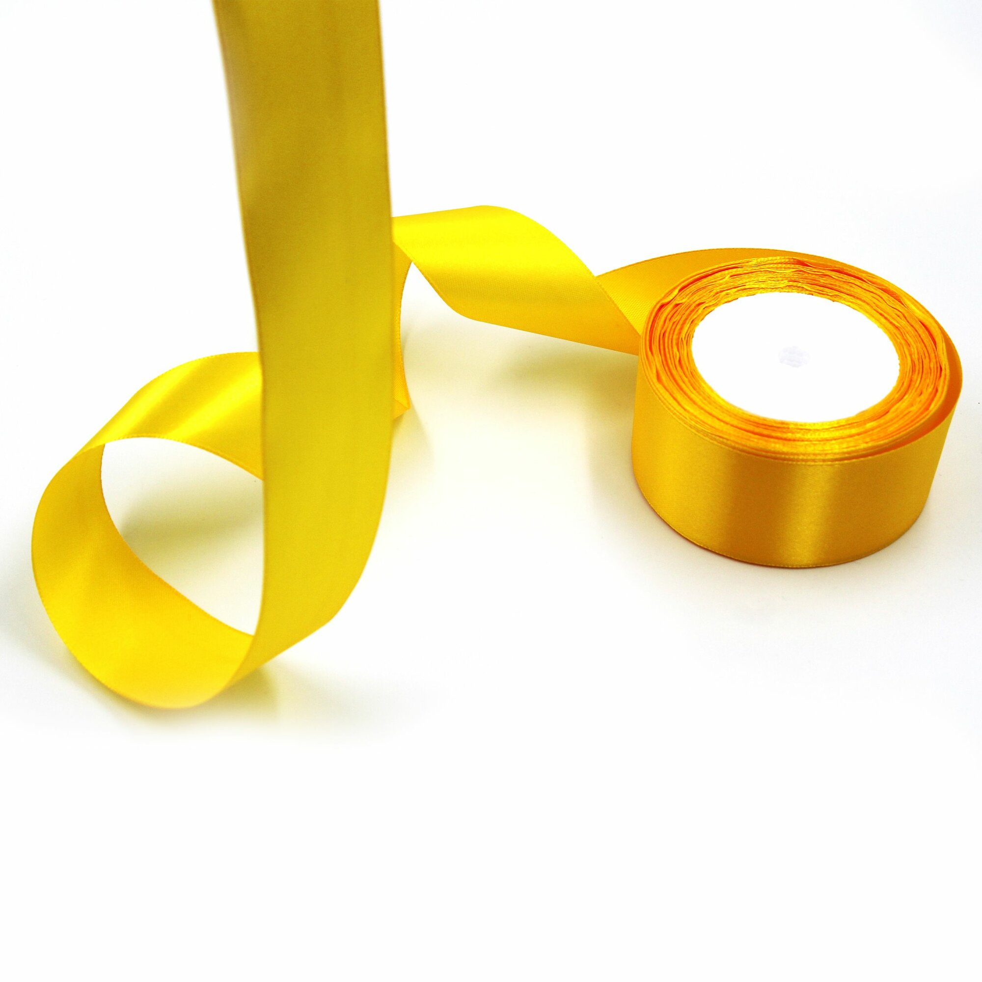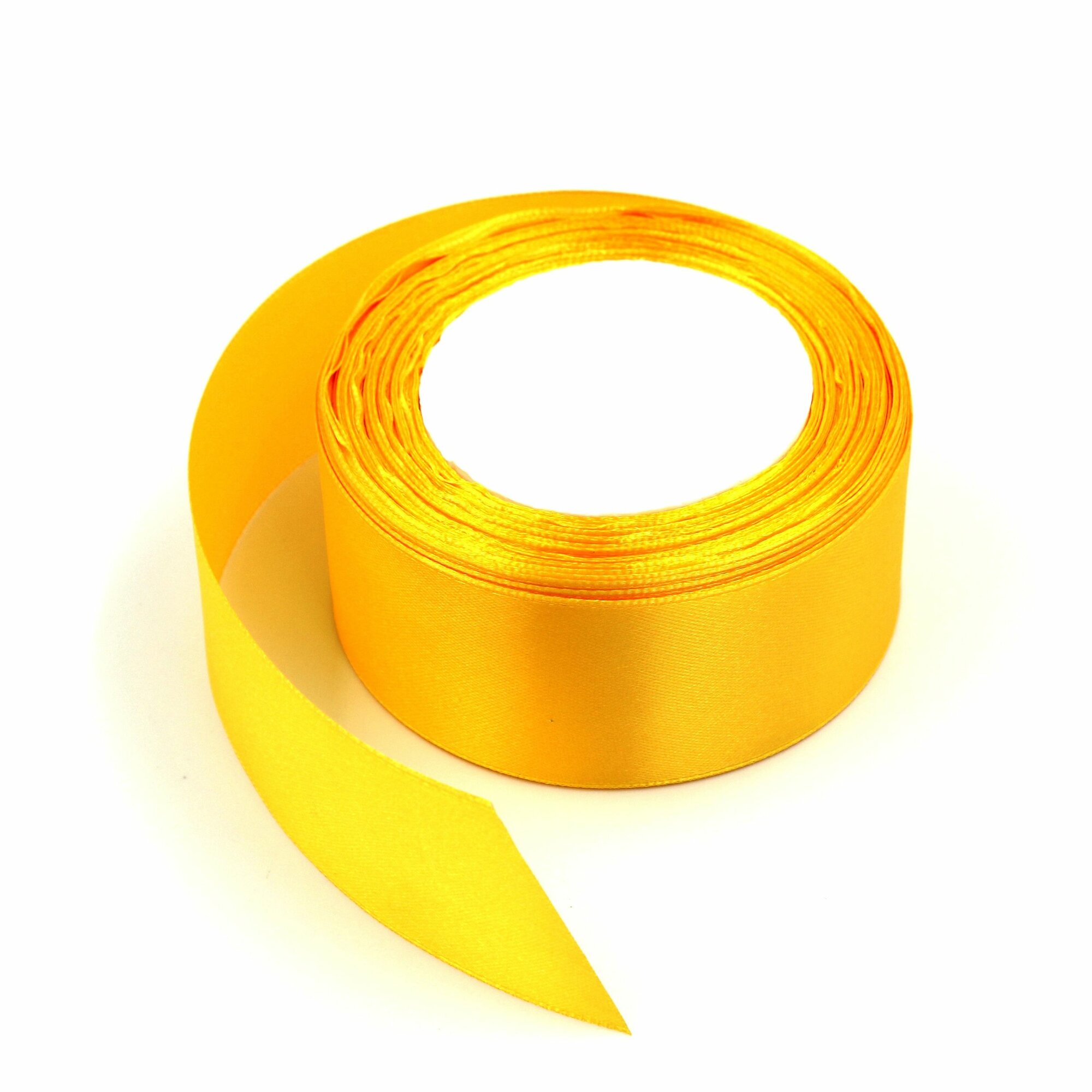 Лента атласная 2,5см х 23м жёлтая, упаковочная для рукоделия, для декора и творчества, шитья, упаковки и оформления подарков, 25мм