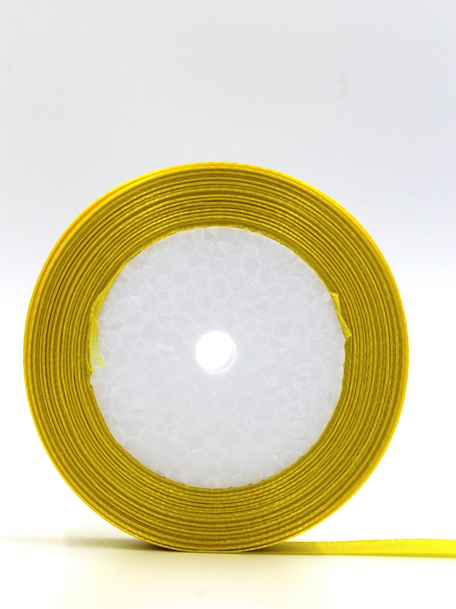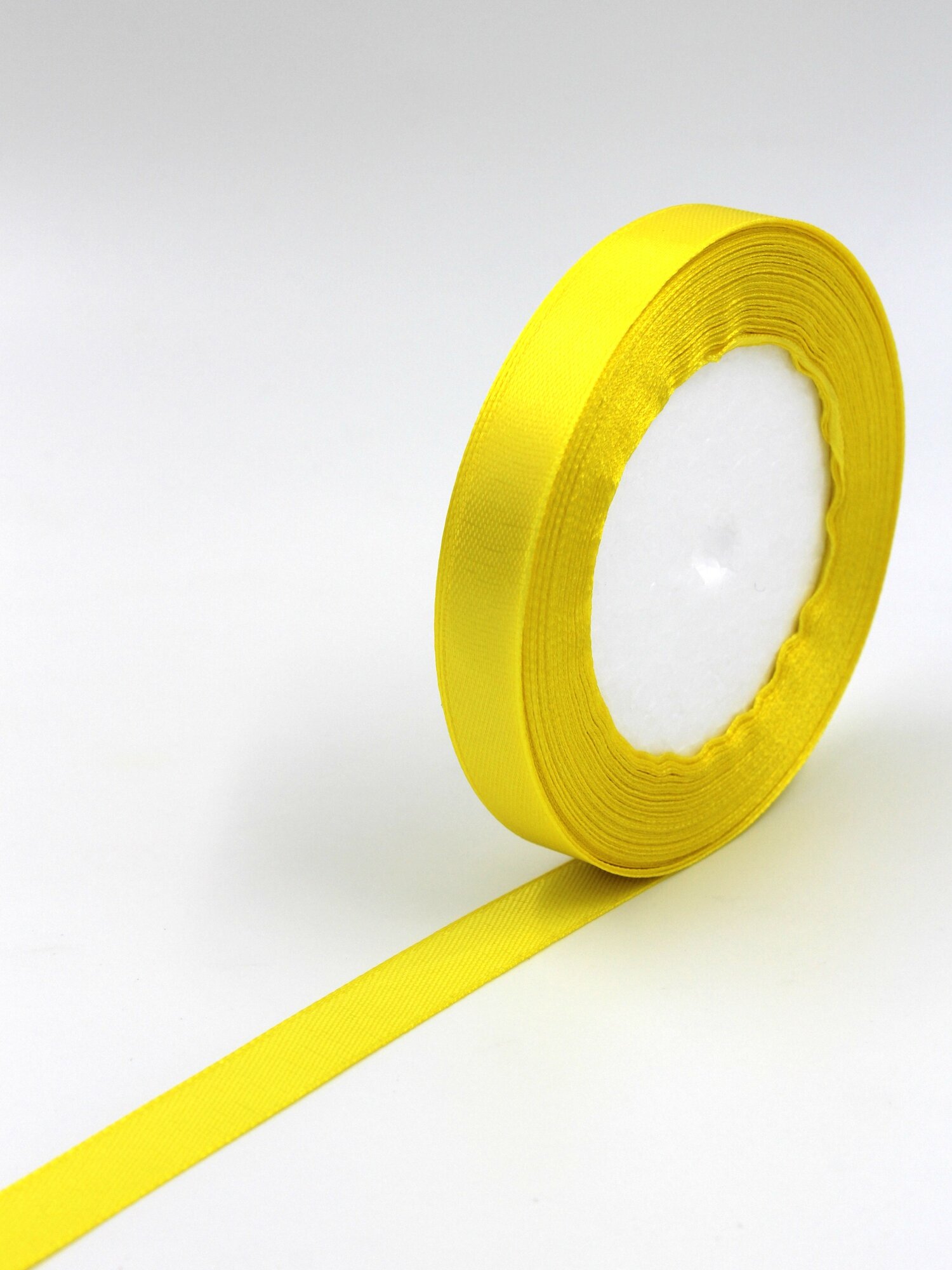Купить Лента атласная 1,2см х 23м желтая, упаковочная для рукоделия, для декора и творчества, шитья, упаковки и оформления подарков, 12мм
