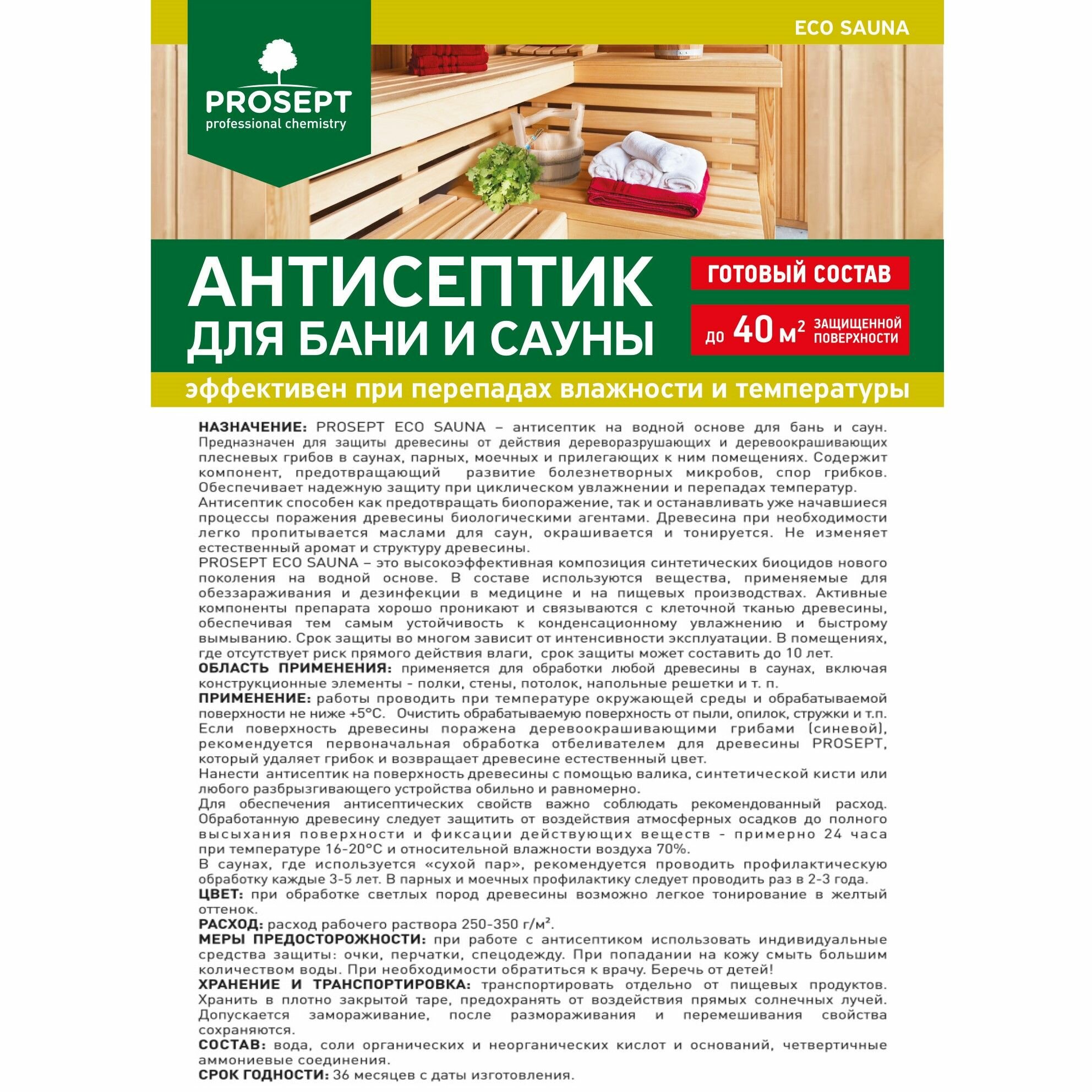 Антисептик для бани и сауны "PROSEPT ECO SAUNA" гот. состав, 10л