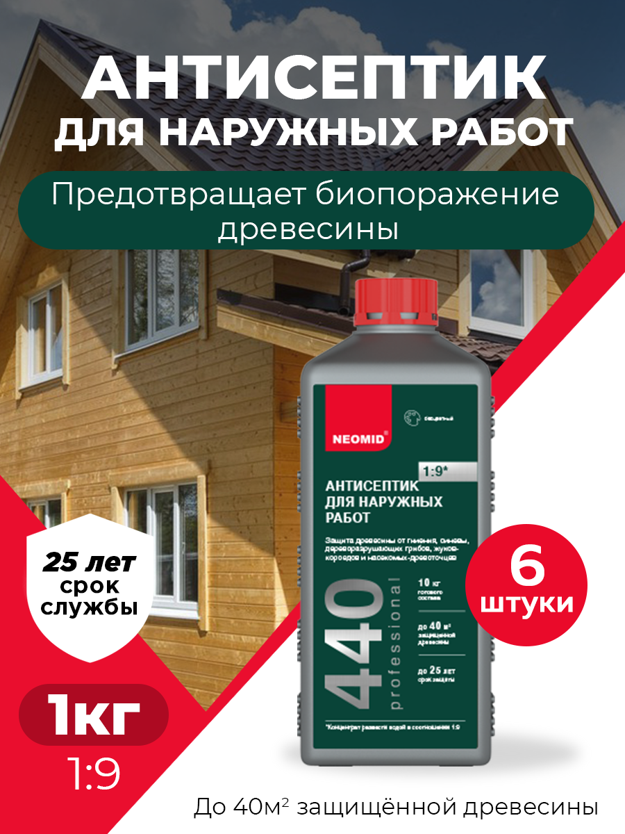 Антисептик NEOMID Protect 440, для наружных и внутренних работ, концентрат 1 л, комплект 6 штуки