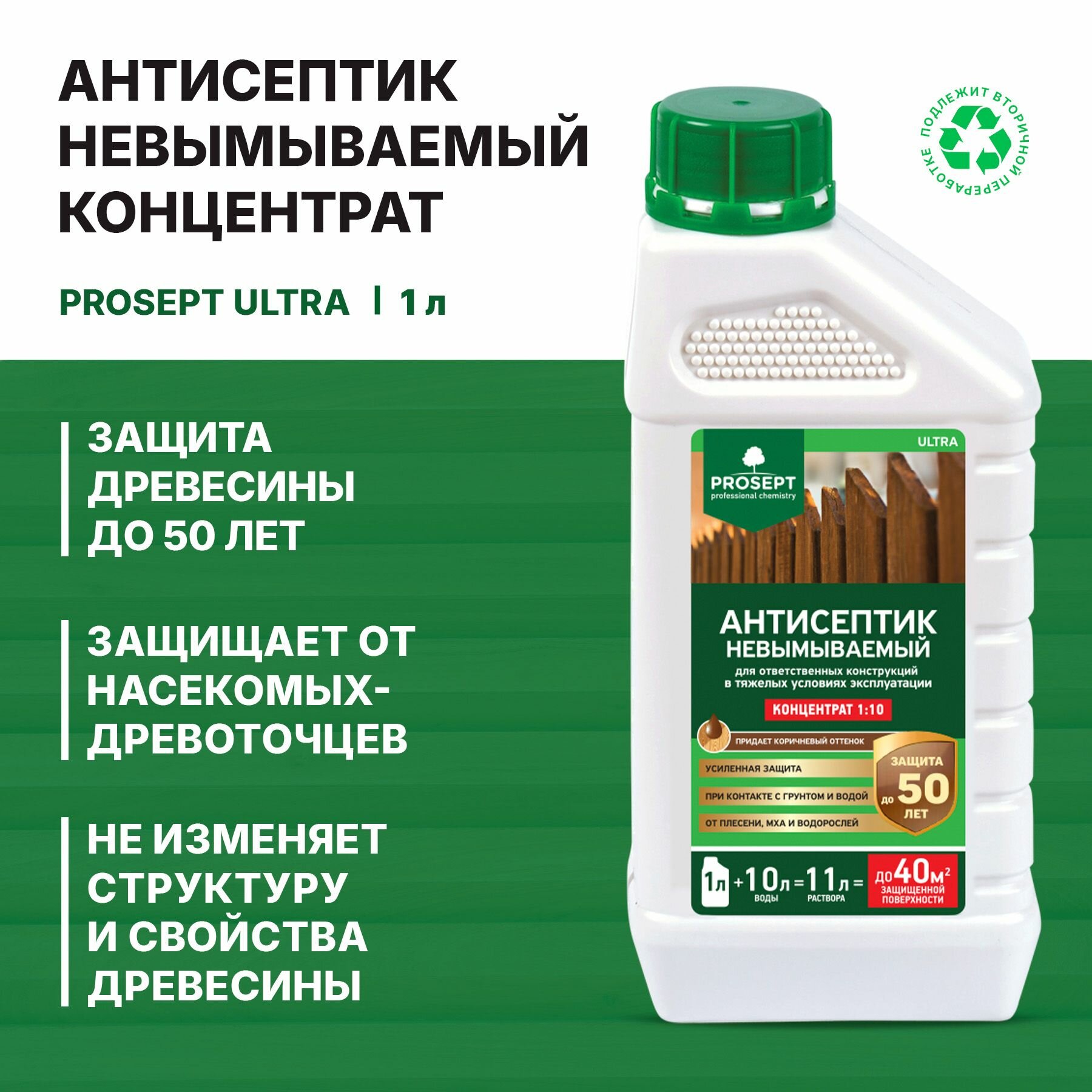 Антисептик невымываемый PROSEPT ULTRA коричневый концентрат 1:10 1 литр + перчатки для защиты рук