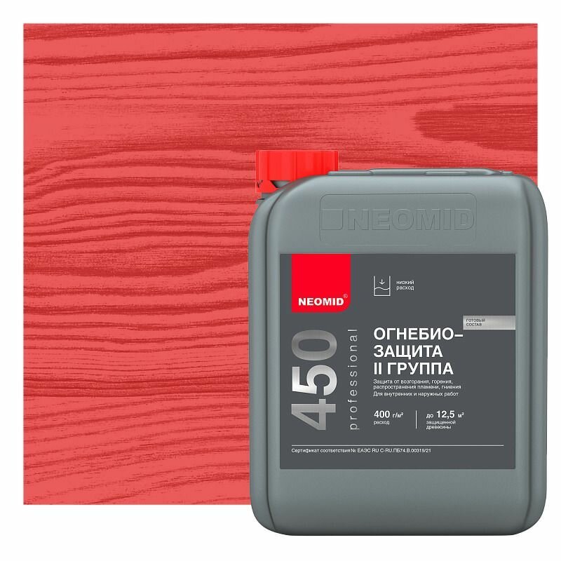 Огнебиозащита Neomid 450 группа огнезащиты 2 (5кг) красный (с индикатором)