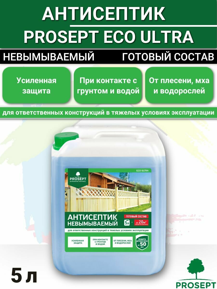 Антисептик невымываемый для ответственных конструкций, Prosept Eco Ultra, готовый раствор, 5 л