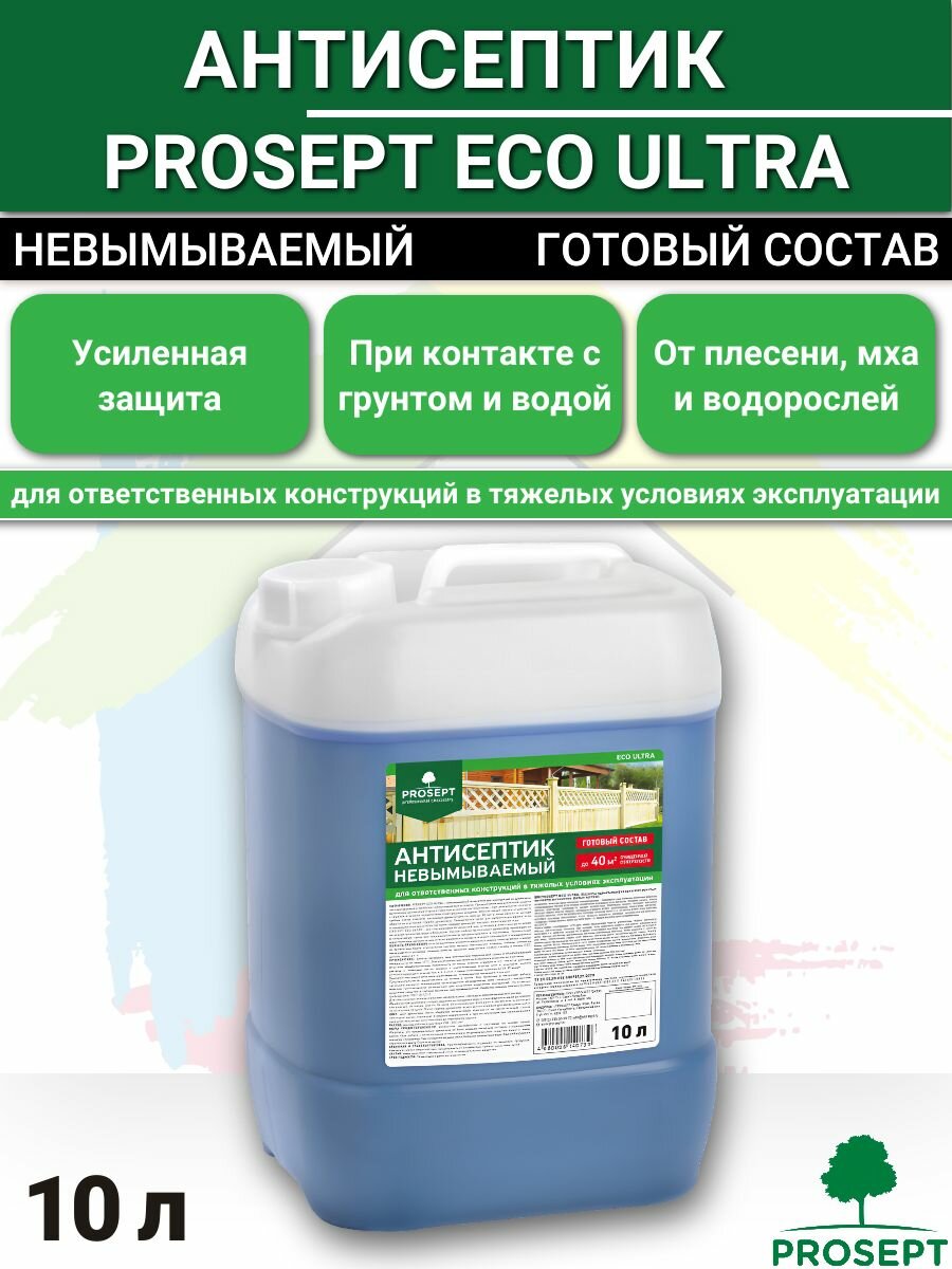 Антисептик невымываемый для ответственных работ Prosept Eco Ultra готовый раствор (10л) бесцветный