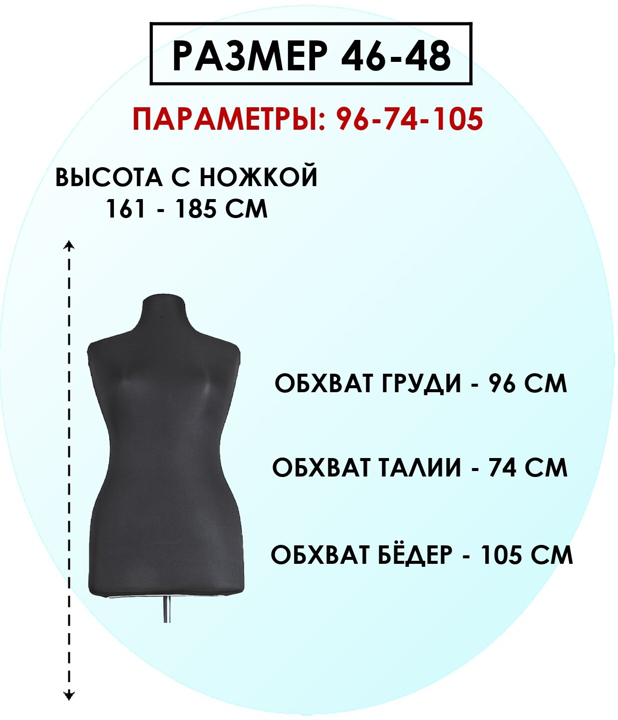 Манекен портновский на хромированной стойке «Женский» 46-48, 89×64×91 см цвет чёрный