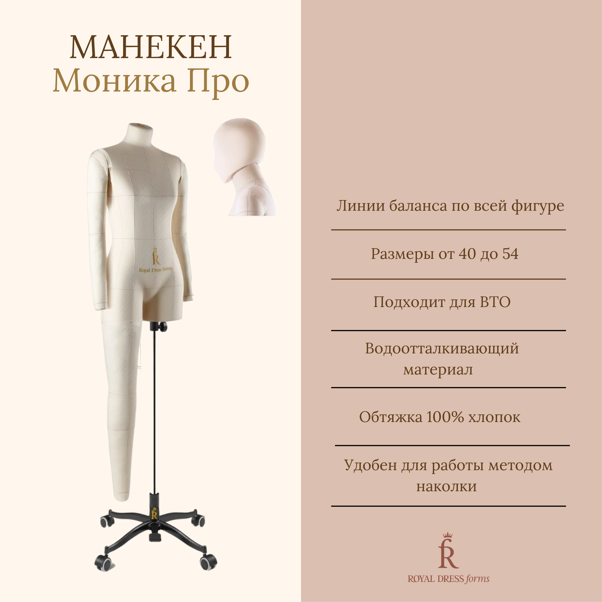 Манекен портновский Моника Royal Dress forms комплект Про размер 44 цвет бежевый тип фигуры Прямоугольник