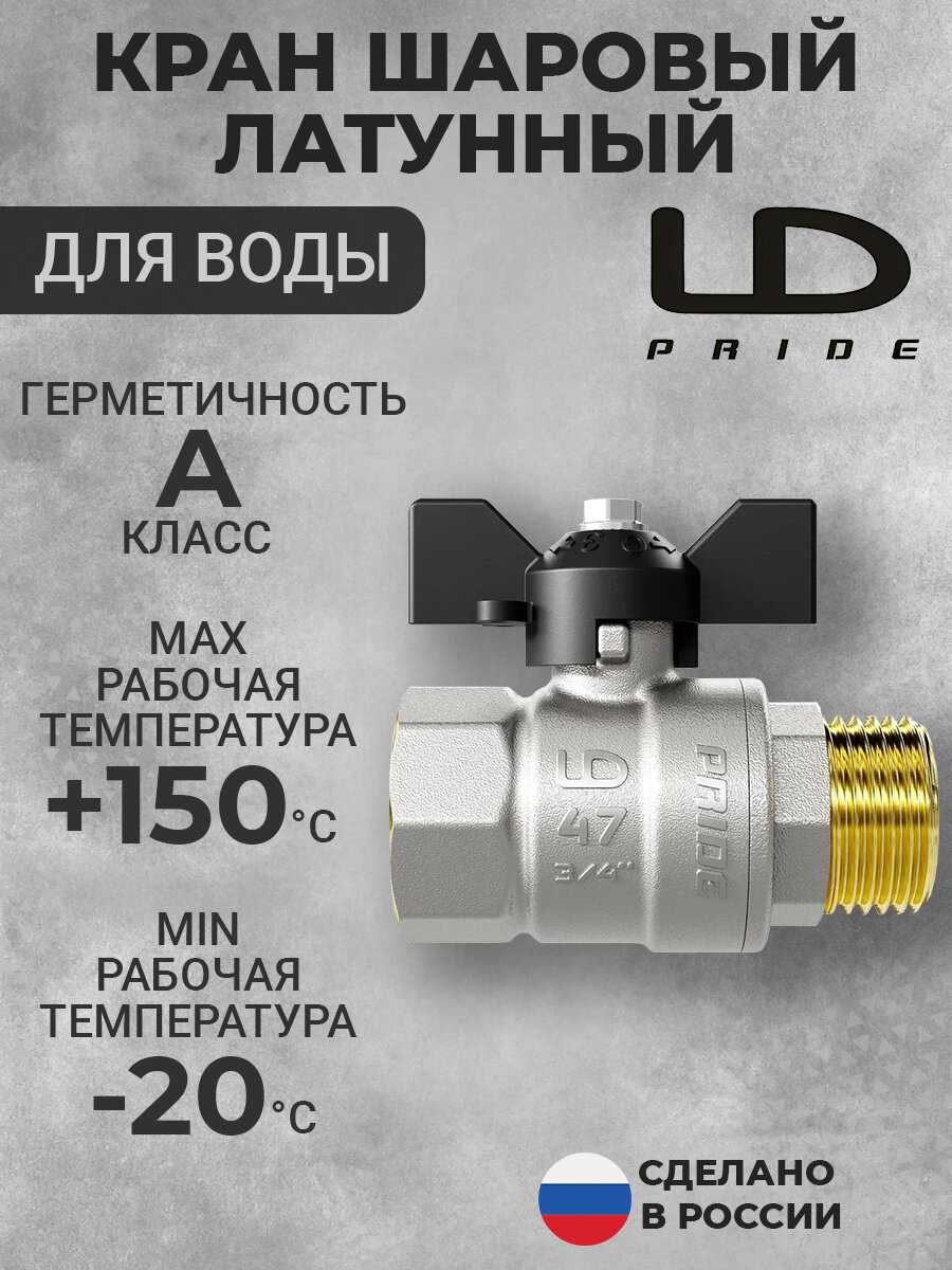 LD Pride Кран шаровой латунный 47.20.B-Н.Б, вн./нар.резьба, ручка-бабочка, 3/4" 47.20.B-Н.Б