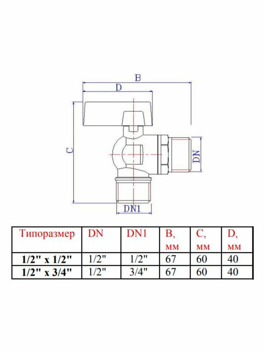 Кран шаровый угловой 1/2" х 3/4"