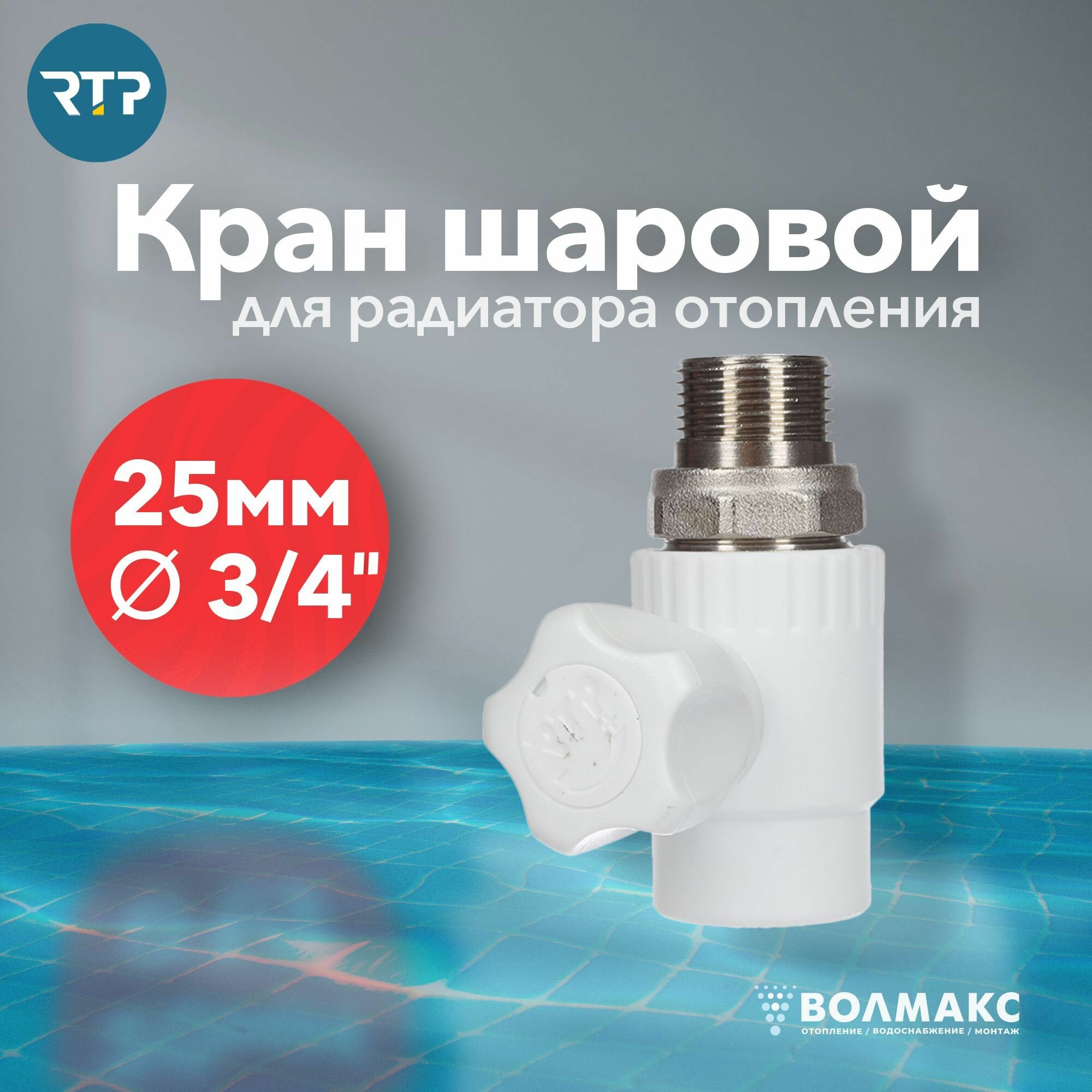 Купить Кран шаровой PPR D25 mm x G3/4" RTP для радиатора отопления фитинг прямой