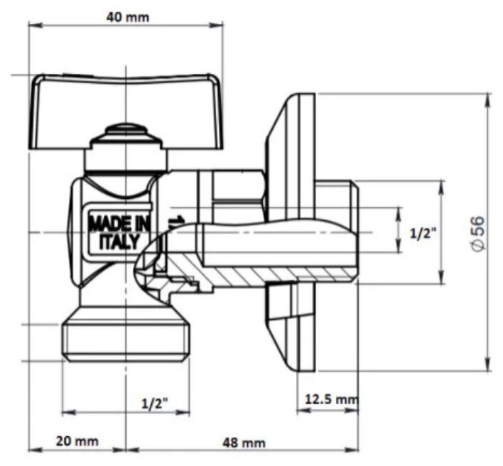 Купить Кран шаровой угловой Bugatti Miami, латунь 1/2"x1/2" (08830001).