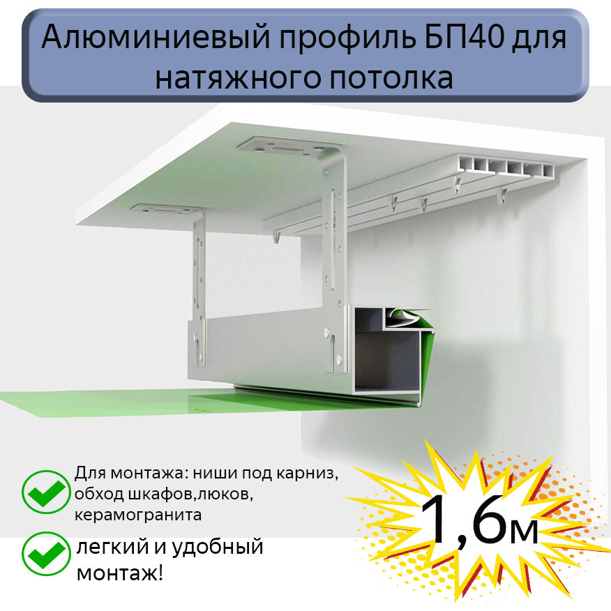 Профиль-брус БП40 для натяжных потолков/ниша под карниз/обход шкафов,люков,керамогранита/1,6 м