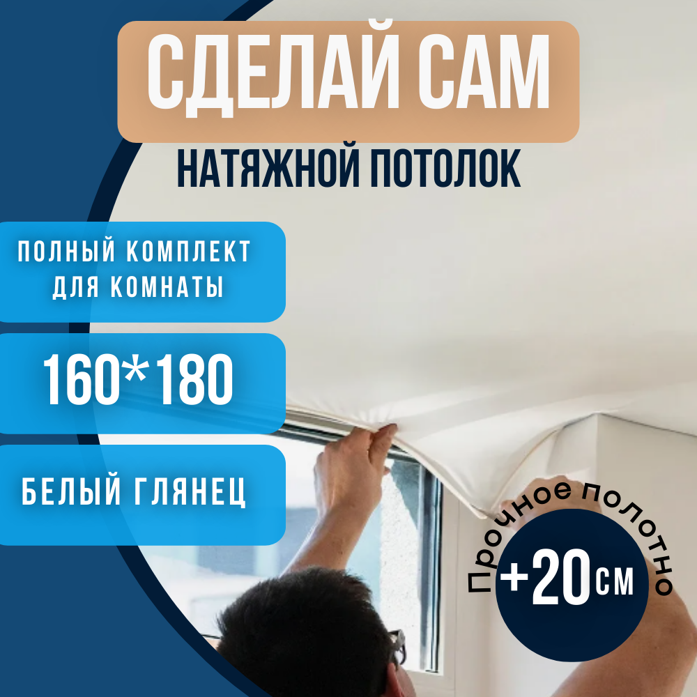 Комплект натяжного потолка 180*160 белый матовый без нагрева "Сделай сам"