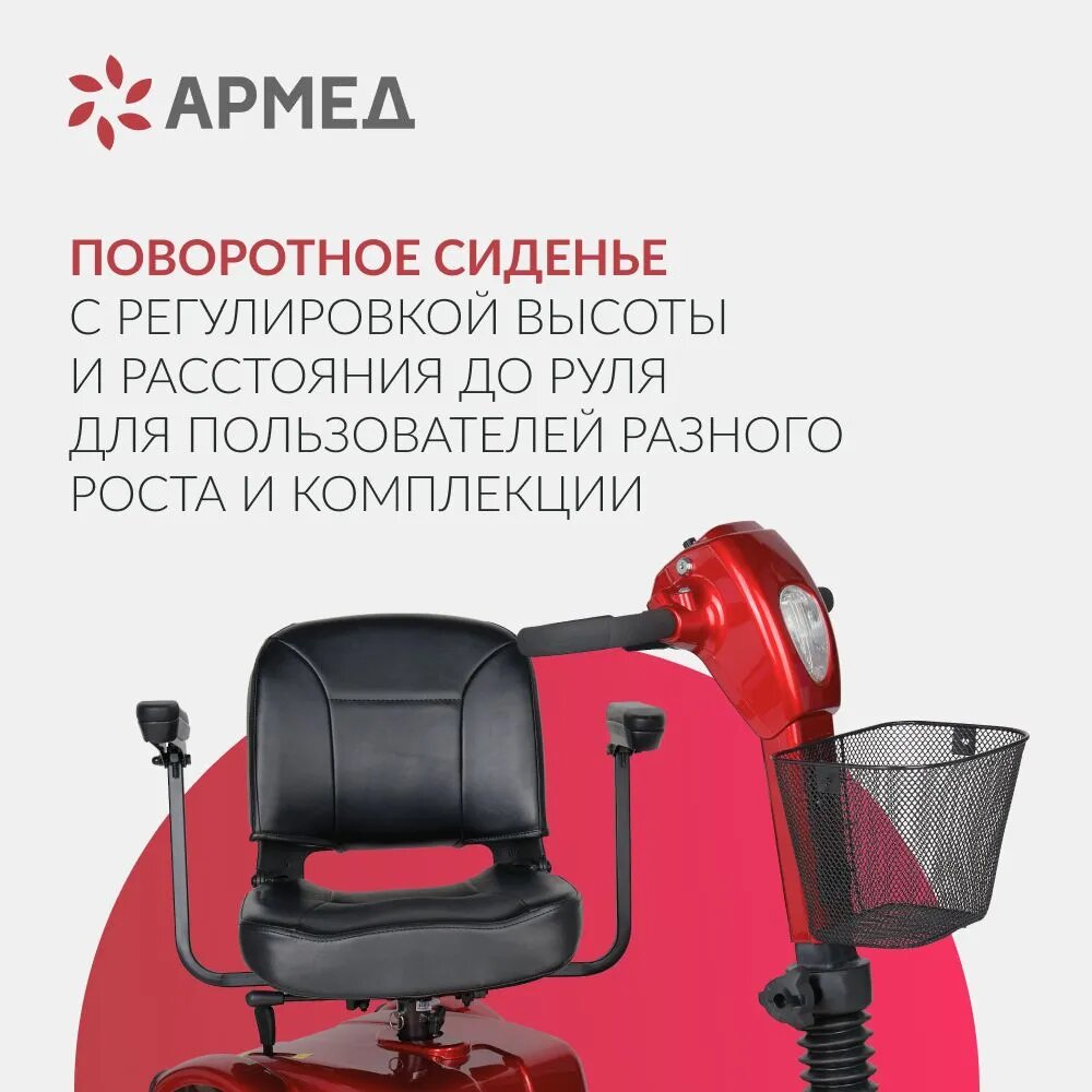 Скутер Армед JRWD801 для пожилых людей и инвалидов (кресло 42см, коляска 4х колесная, электрический привод, прогулочная) интересное: