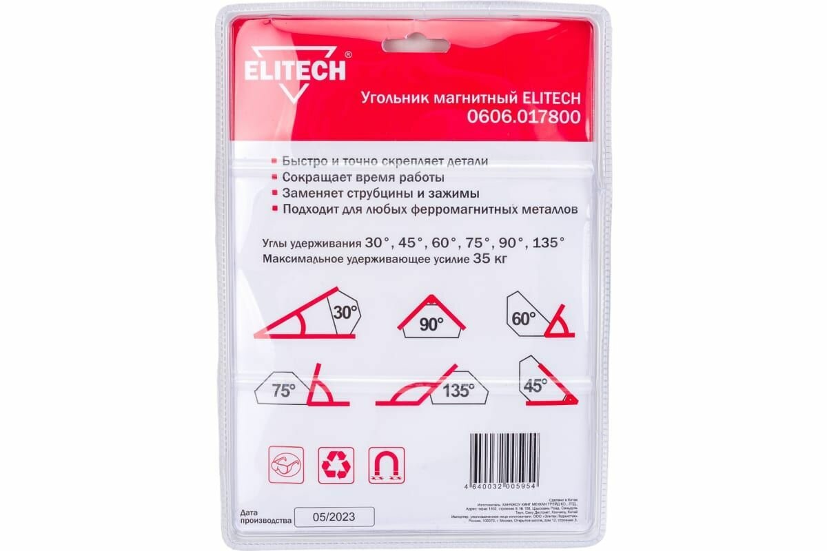 Магнитный уголок ELITECH усилие max -35кг углы-30/45/60/75/90/135 интересное: