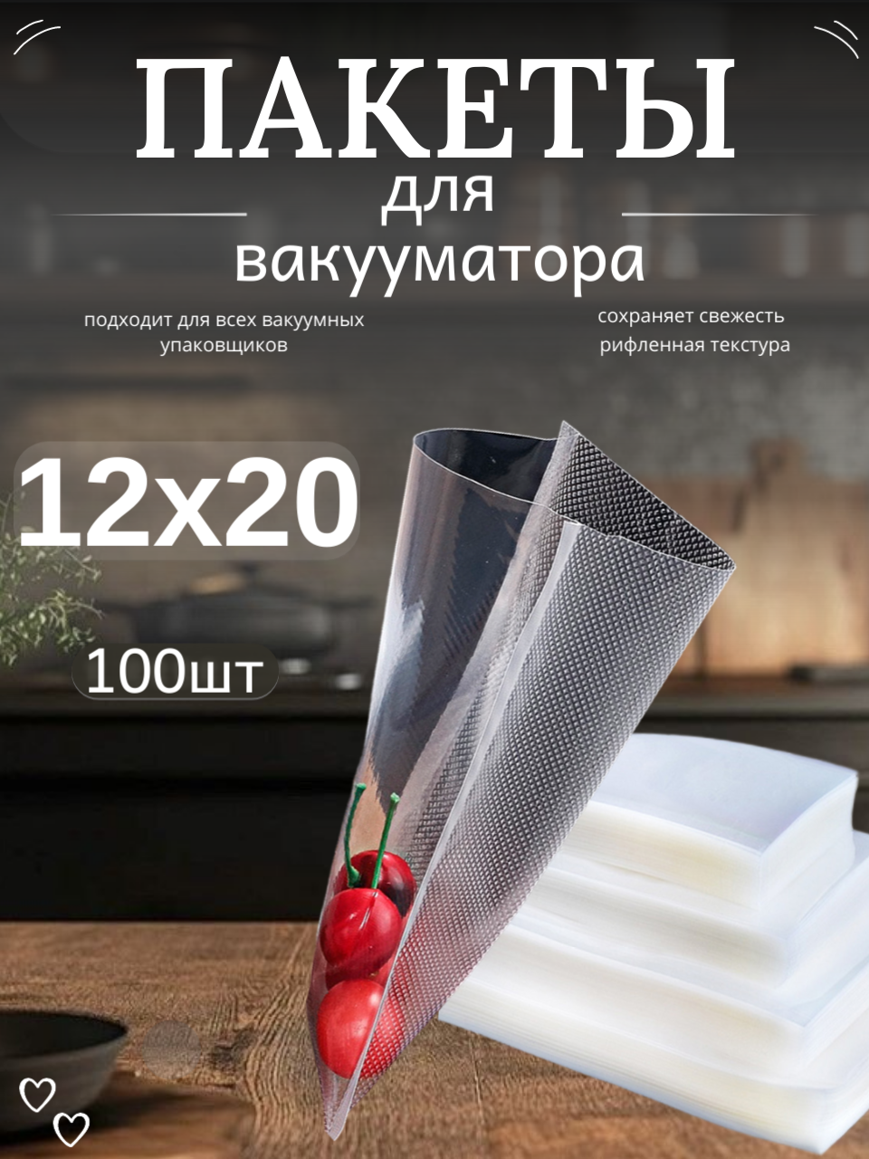СохранитьПакеты для вакууматора, 12х20см 100шт прочные (180 мкм) , рифленые, пакеты для вакуумного упаковщика интересное: