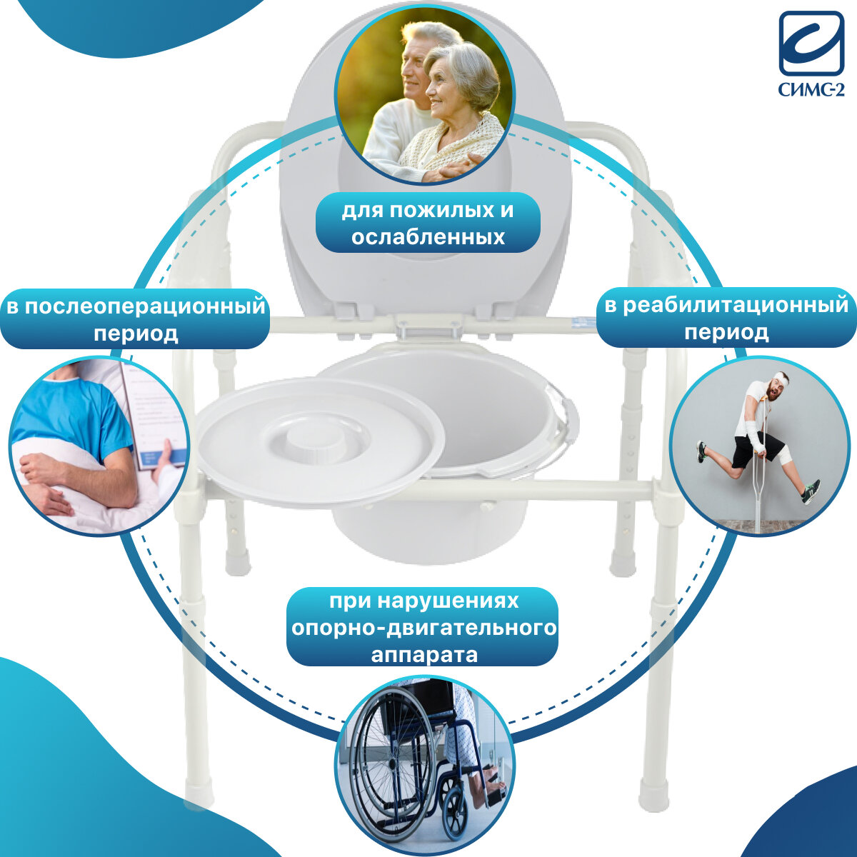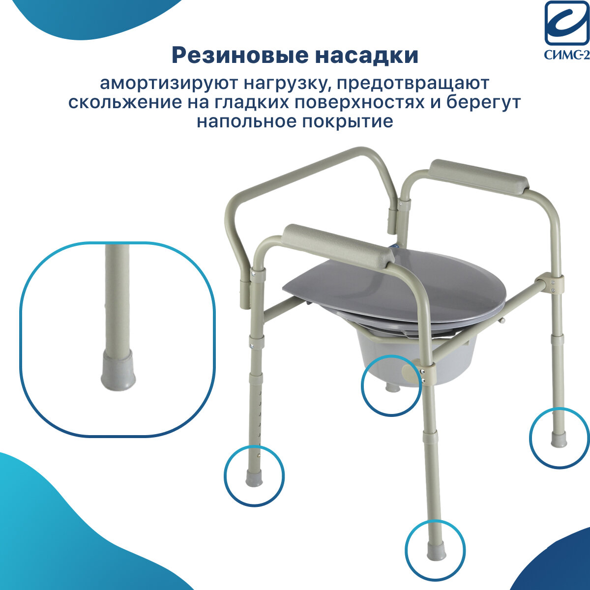 | Особенности | использование в качестве стула / откидываемая крышка / противоскользящие наконечники ножек / противоскользящие подлокотники / регулировка высоты сиденья / съемное санитарное оснащение |